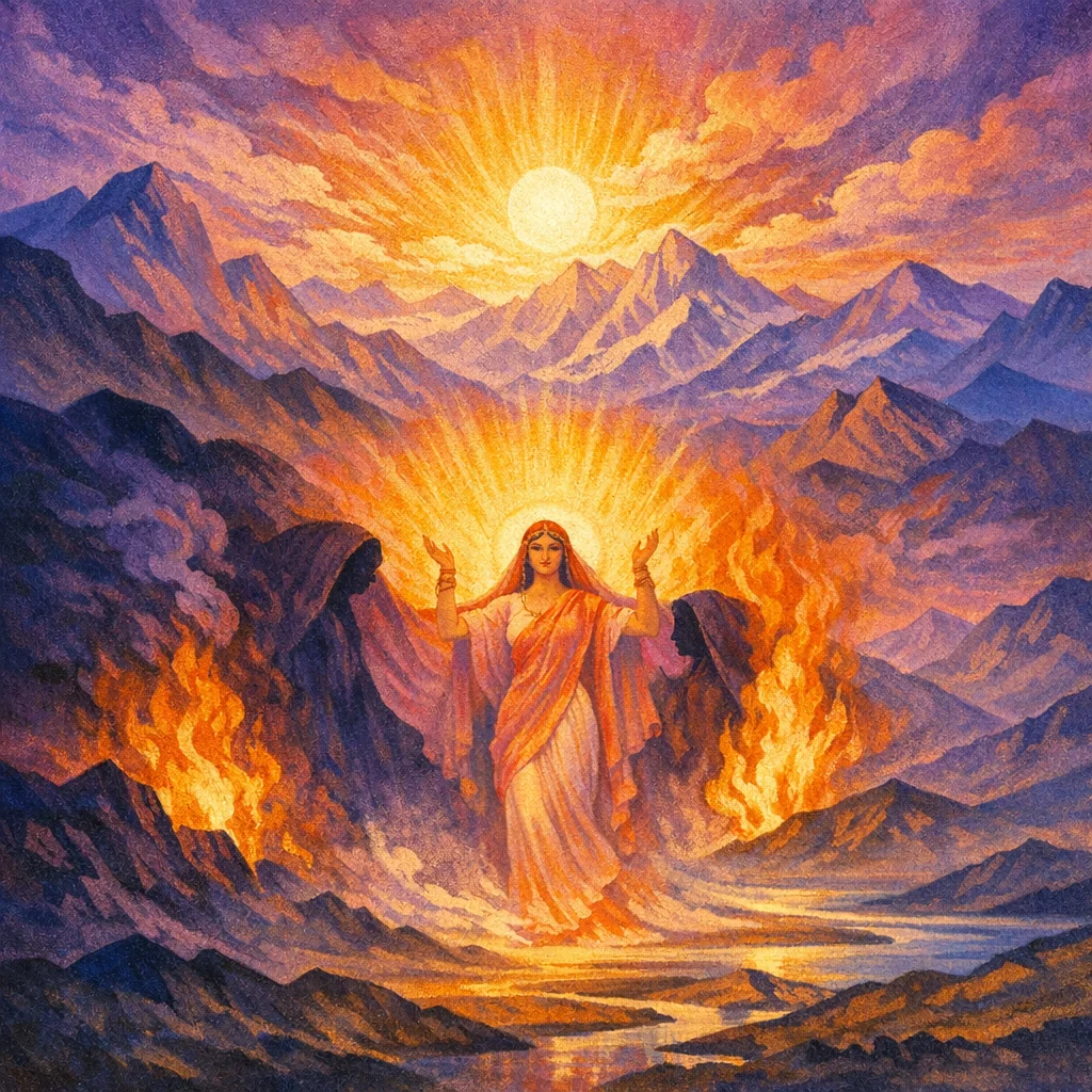 O Dawn, rich in manifestation, you have opened out with your light and uncovered the darkness; move then according to your own inherent law of being, bringing the soul forward in its native rhythm of illumination.