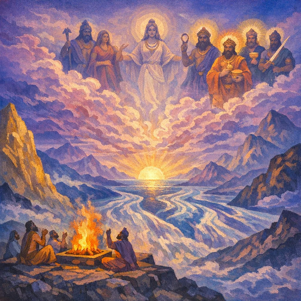 Forth they sang the ancient stations; when they rose, the clear-seeing separators opened out the ways. The ordainers set them in their distinct places—unceasing, thinking the ṛta, the wondrous ones shone forth.
