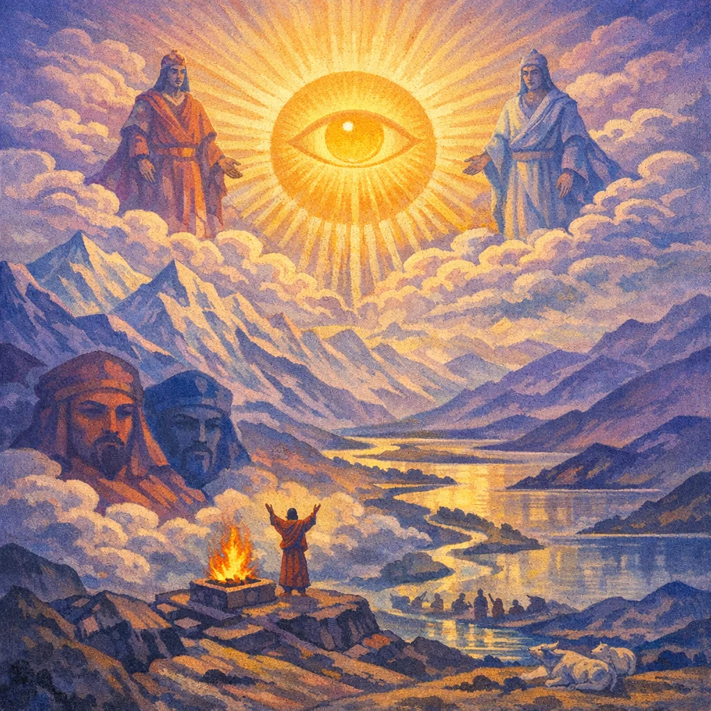 He is the illumined seer who knows their three assemblies and the birth of the gods and their ancient continuities. Seeing straight among mortals and also the crookedness, the Sun-like noble one looks upon all and makes the truth visible in our mixed human field.