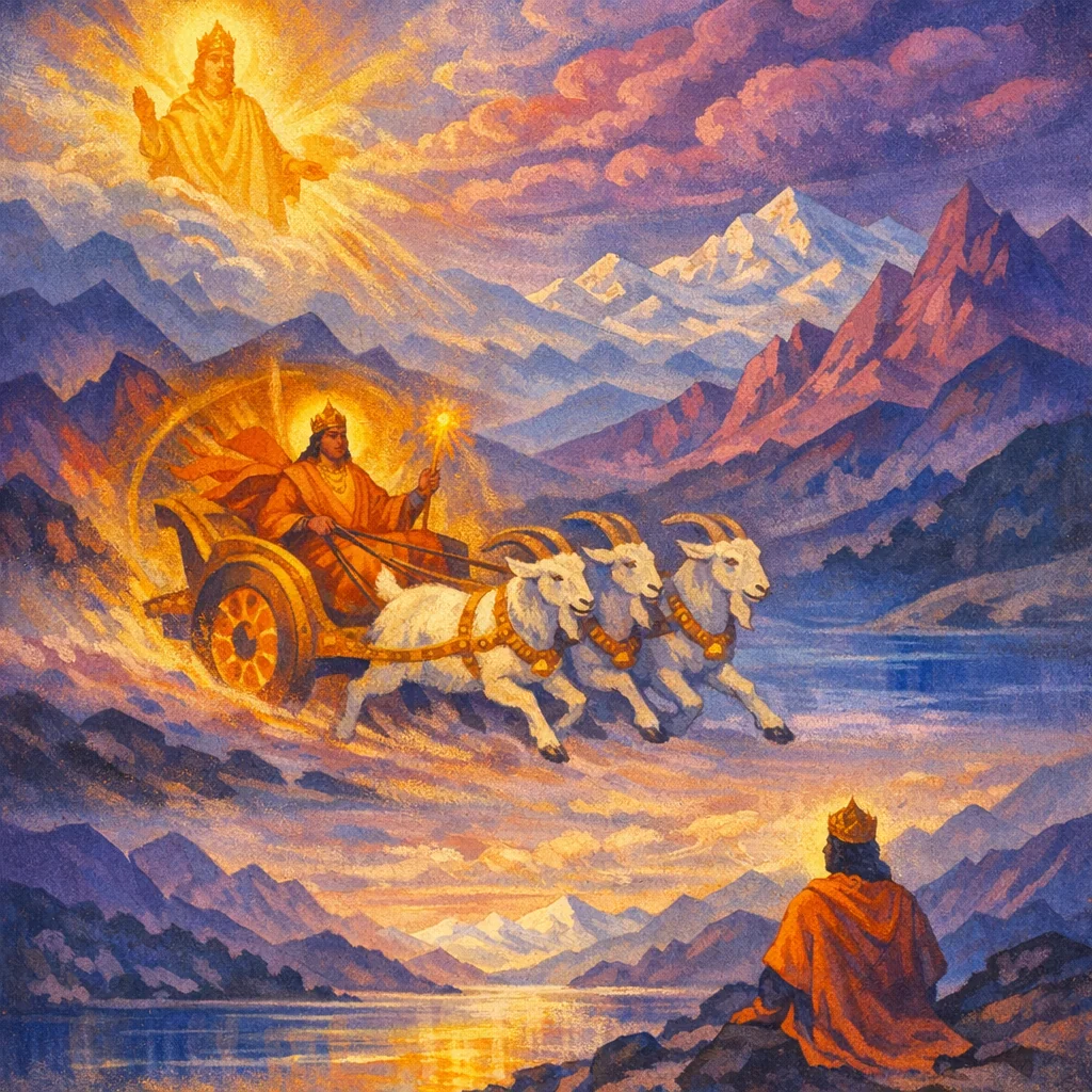 Goats are Pūṣan’s traditional draft animals in Vedic imagery. They symbolize practical, steady conveyance and the safe carrying of divine guidance into real-world travel and daily life.