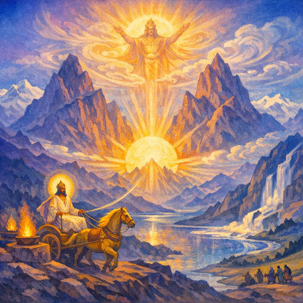 Pūṣan is praised as a benevolent guide and protector—one who watches over paths and movements, brings nourishment and prosperity, and helps the seeker arrive safely in both outer travel and inner progress.