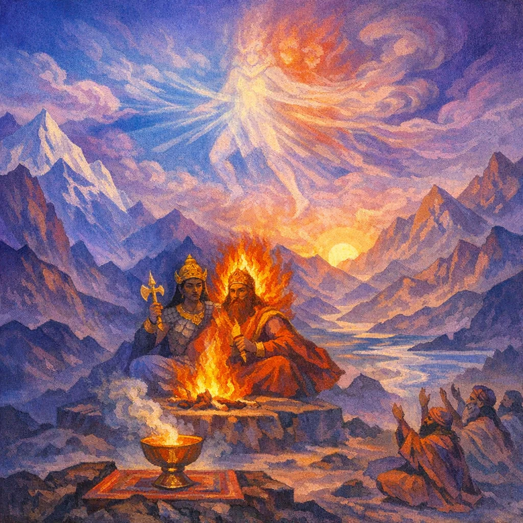 Such imagery compresses a deeper idea: divine power is not limited by ordinary rules. In ritual context it suggests that Indra-Agni’s energy can break obstacles and reveal a hidden order behind what seems fixed or impossible.