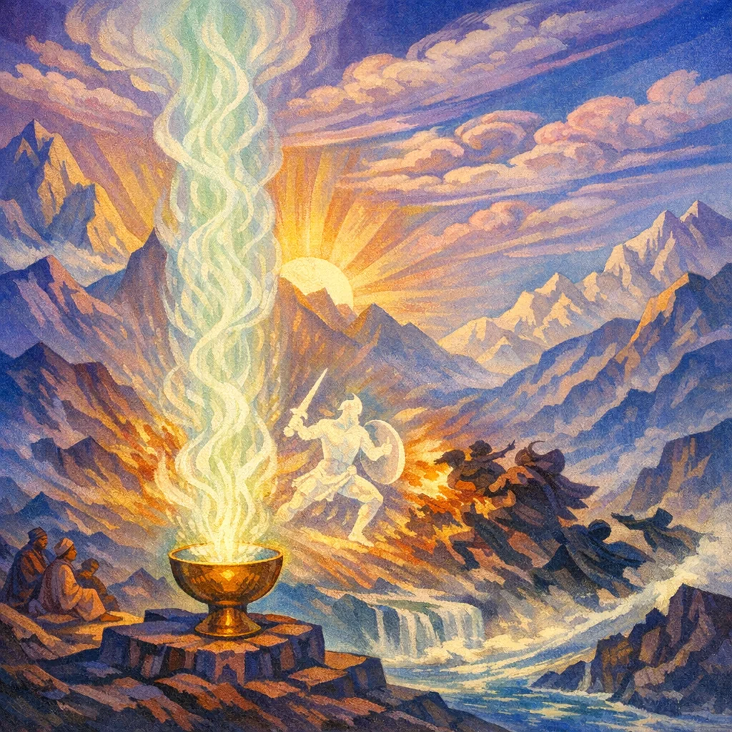 The inspired thoughts have lowed in response over the Bull’s seed; the Mothers of the young calf (the nurturers of the new-born light) attend and foster it.
