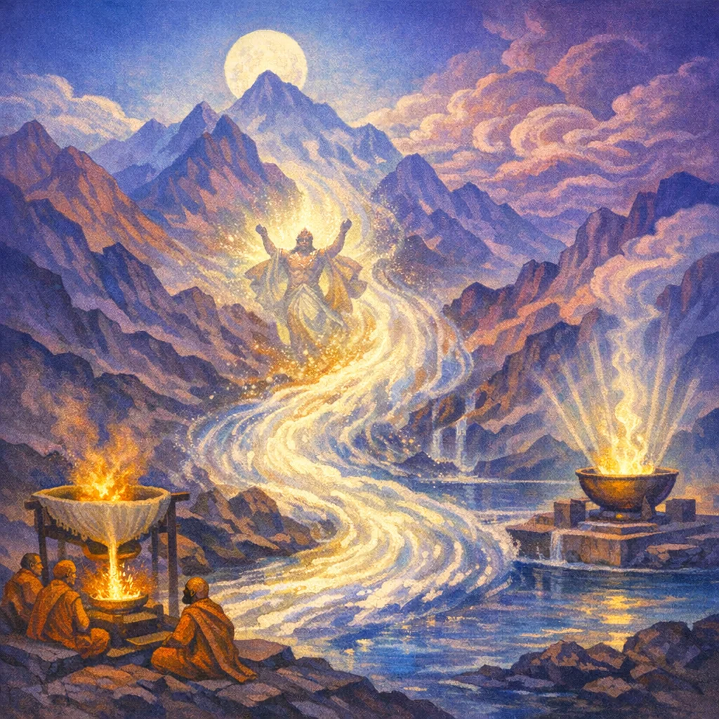 Soma Pavamāna is Soma as he is being purified—flowing through the ritual filter—so he becomes fit for the gods and powerful for the sacrificer.