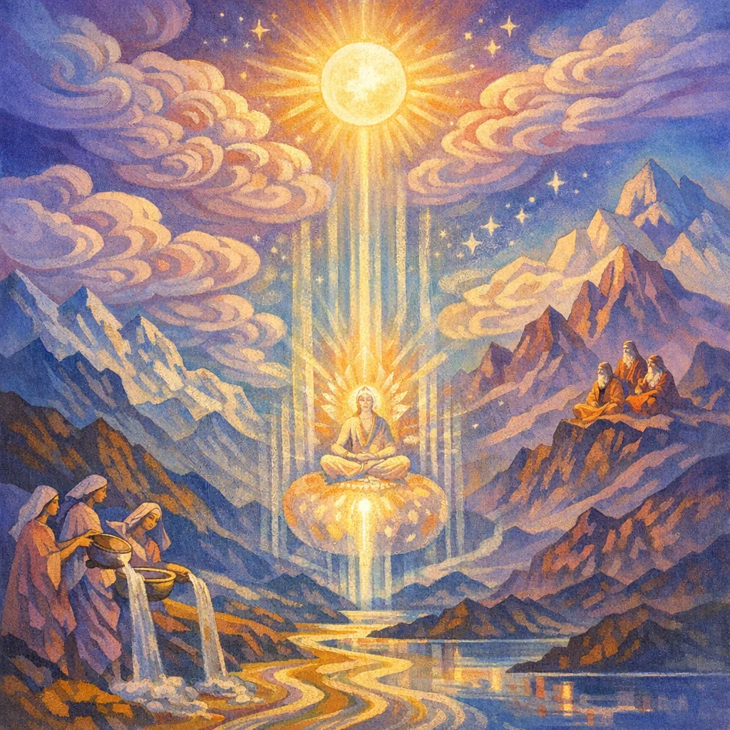 In the ritual, Soma is strained through a filter to become fit for offering; the hymn also uses this as a symbol of inner cleansing—turning raw energy into clear awareness and discernment.