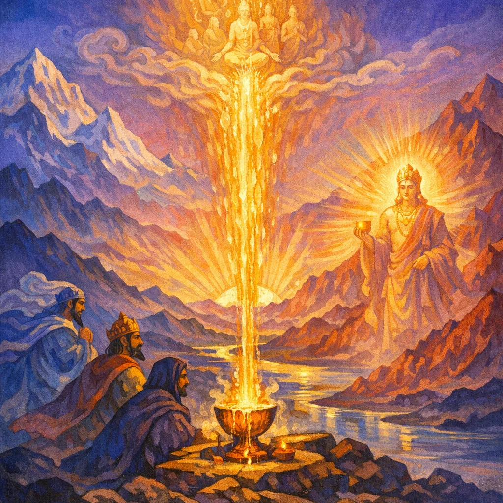 On the ritual level it refers to Soma being washed, mixed, and filtered as it flows. Symbolically it points to inner purification—refining life-energy and thought into a clear, luminous essence.