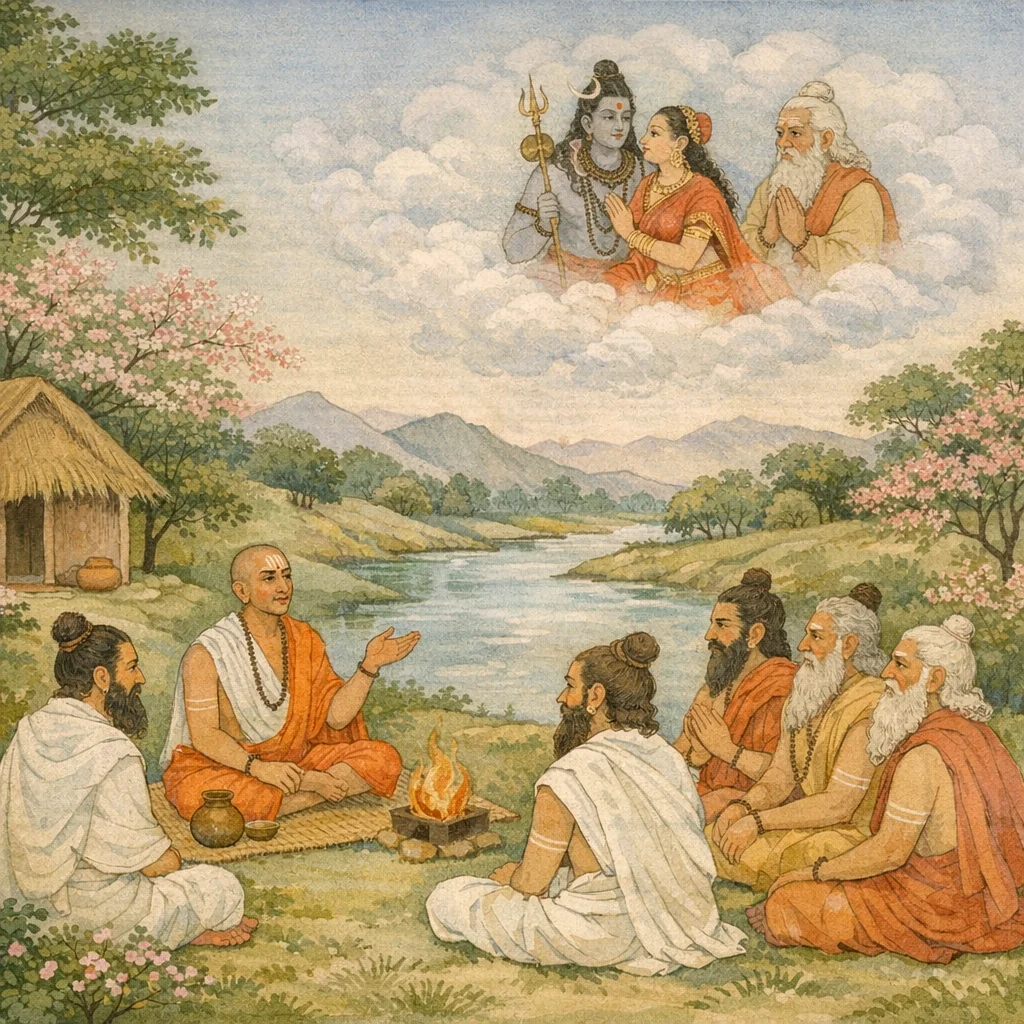 Sūta said: “May auspiciousness be upon all the sages; may you ever remain happy. May you be devoted to Śiva, steadfast in spirit, and active promoters of devotion to Śiva.”