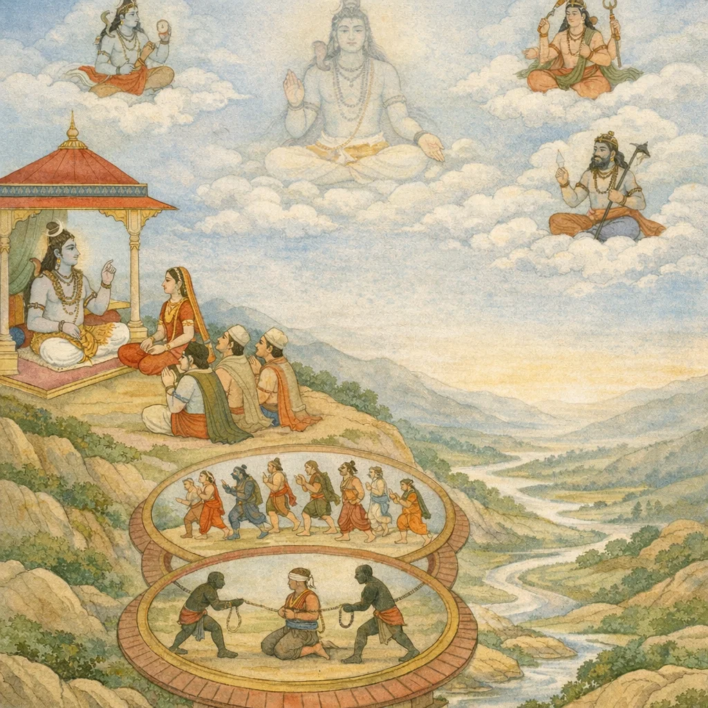 “Vāsudeva and Aniruddha, then the supreme Saṅkarṣaṇa, and Pradyumna—thus is renowned the unsurpassed wheel of sustenance (sthiti-chakra).” From the Śaiva standpoint, such sustaining powers operate within the Lord’s governance, while Śiva remains the transcendent Pati beyond all cycles.