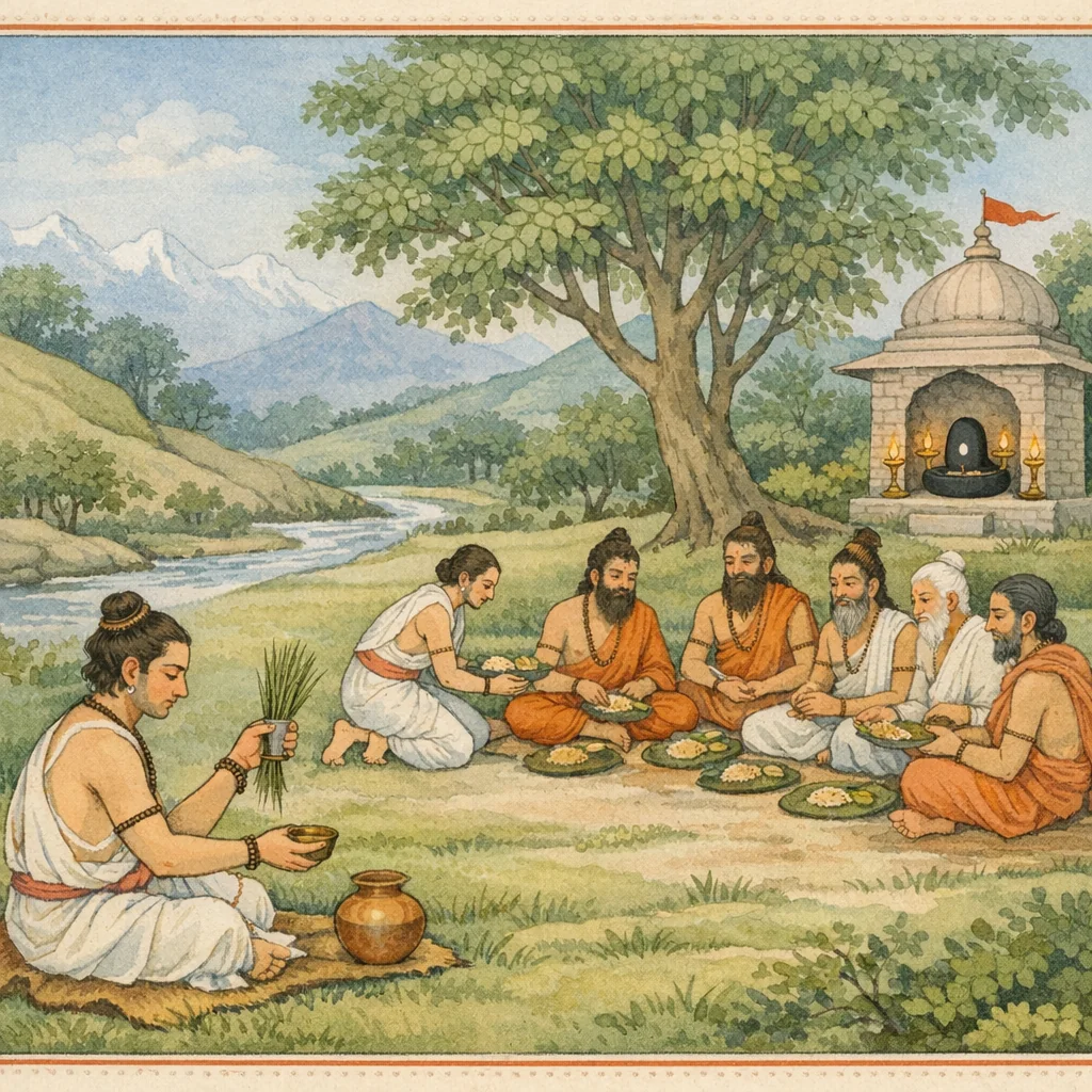 Subrahmaṇya said: “On the twelfth day, rising early in the morning, after bathing and completing the prescribed daily rites, one should reverently approach and honor Śiva’s devotees—whether ascetics devoted to Him or Brāhmaṇas dear to Śiva.”