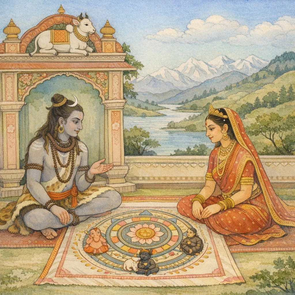 Rather than a narrative episode, the chapter presents a theological-ritual argument by procedure: Śiva teaches that correct worship is inherently hierarchical and spatial—divine powers are approached through ordered layers (āvaraṇas), where precedence and direction encode doctrinal relationships.