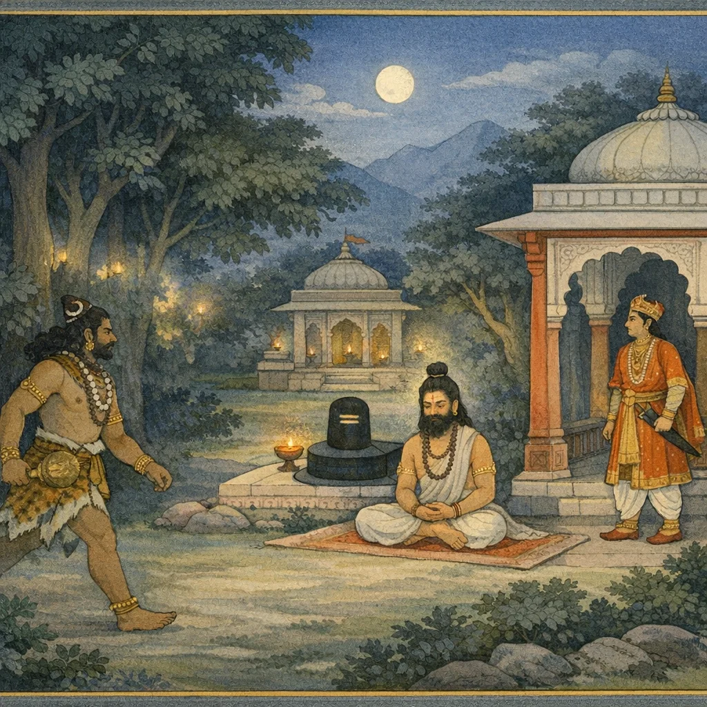“Compassionate Śaṅkara is certainly present here in this earthly emblem (the Pārthiva Liṅga). Yet He does not act here for my sake—so how could this being be a rākṣasa at all?”
