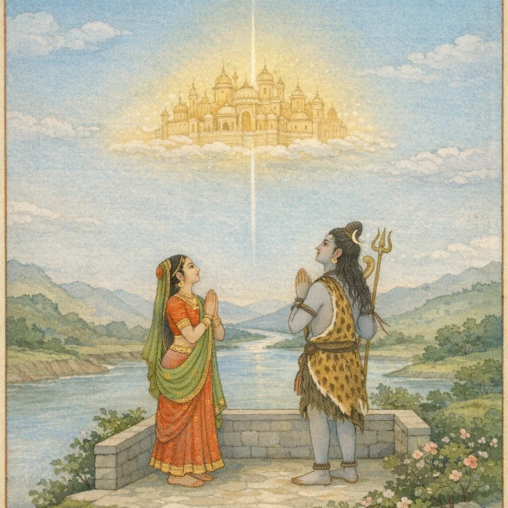 This chapter, spoken by Sūta to the assembled ṛṣis, proclaims Viśveśvara’s saving greatness as the destroyer of great sins (mahāpātaka) and grounds it in sacred ontology. The visible universe is described as a mere ‘vastumātraka’ appearance, resting on cidānanda—unchanging, eternal, and nirvikāra. From that Absolute arises a “second intention” (dvitīyecchā), by which the same Reality becomes saguṇa and is named “Śiva.” A polar manifestation is then taught: Śiva as the masculine principle and Śakti as the feminine power—an ordered duality rooted in the one cidānanda source. When Prakṛti and Puruṣa are uncertain how to proceed, an authoritative voice of the nirguṇa Paramātman declares that tapas is required for an excellent creation to emerge. Asked where austerity should be performed, a radiant sacred city/abode of concentrated tejas, fully furnished and measuring pañcakrośa, appears in the mid-space near Puruṣa. Thus the chapter unites metaphysical emanation, the problem of beginnings, and tapas as the ritual-ascetic catalyst of ordered manifestation, while presenting Viśveśvara as the theological key that dissolves sin and ignorance.