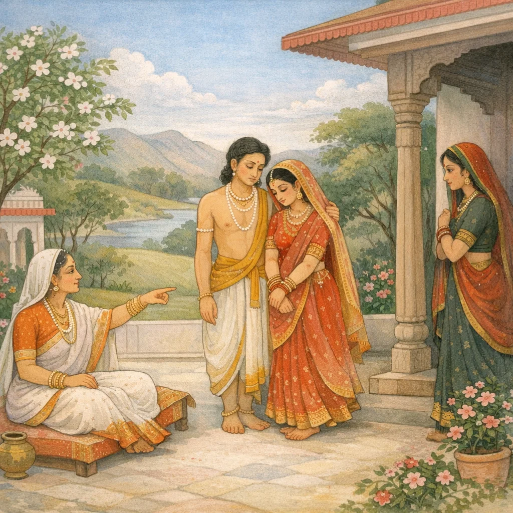 Ghuśmā said, “The bride and the son belong to you, not to me.” Out of affection, both the daughter-in-law and the son regarded the mother who bore him as their own mother-in-law.