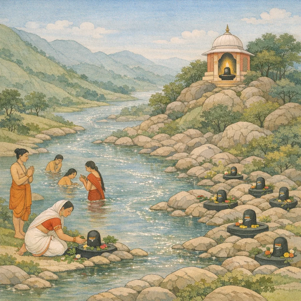 The chapter encodes an ontology of sacral immanence: Śiva is not restricted to temple iconography but is readable in nature as liṅga-presence and rudra-svarūpa. This sacralization of geography legitimizes pilgrimage rites (snāna/darśana) as direct encounters with Śiva-tattva, making liberation-oriented practice accessible through embodied, place-based disciplines.