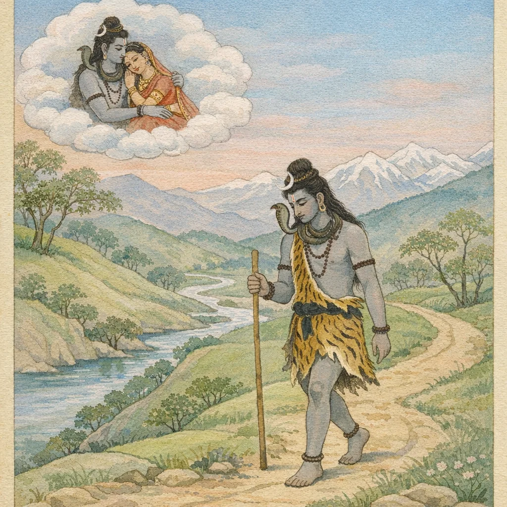 Śiva as Śambhu/Śaṅkara in ascetic mode (digambara), as the devotee-protecting ‘bhaktaśaṅkara’, and as the līlā-adept wanderer whose movements create the narrative space for Pārvatī’s attainment.