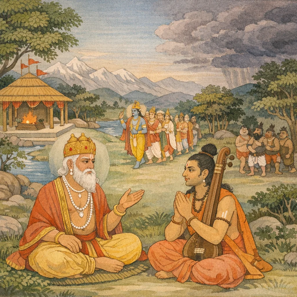 Narada said: “For what reason did the foremost sage Dadhīci curse Viṣṇu? And why did Hari, together with his ally, assume an attitude of anger toward him?”