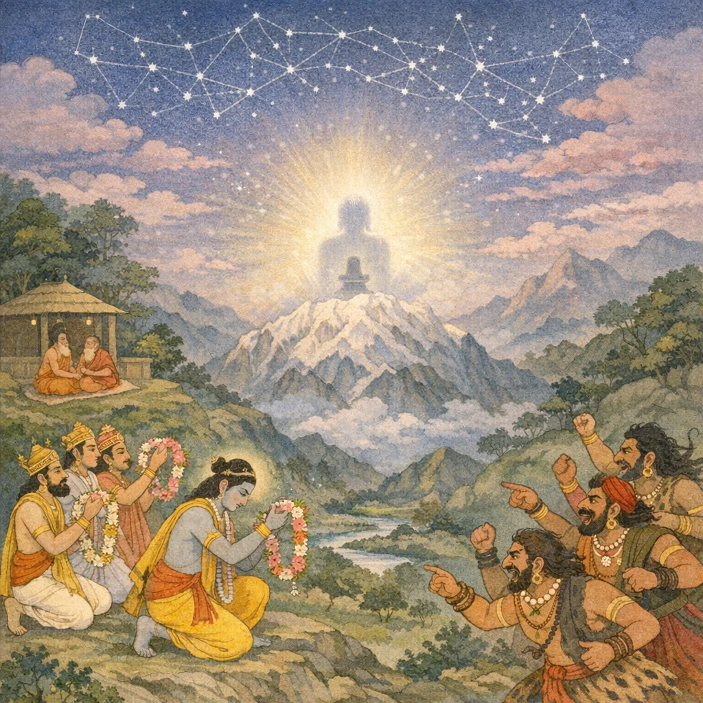 Adhyāya 41 is a theologically dense stuti and inquiry offered by Viṣṇu and other devas to Mahādeva. They affirm Śiva as Īśvara/Śaṃbhu and as Parabrahman beyond mind (manas) and speech (vāc), while also reflecting on his free use of “parā māyā” that bewilders embodied beings. The chapter proclaims both his transcendence and his immanence: through his own śivaśakti he creates and sustains the universe, like a spider spinning its web. It further presents Śiva as the establisher of worldly and Vedic boundaries (setu), the originator of ritual order (kratu), and the constant dispenser of all karmic fruits. It contrasts pure, faith-filled (śraddhā) Vedic knowers with envious, deluded critics who harm others through harsh speech, and ends with a plea for Śiva’s grace and corrective intervention against such destructive tendencies. Overall, it maps a Purāṇic theology of sovereignty—Śiva’s freedom to veil and reveal, joined to compassionate governance of moral and ritual order.