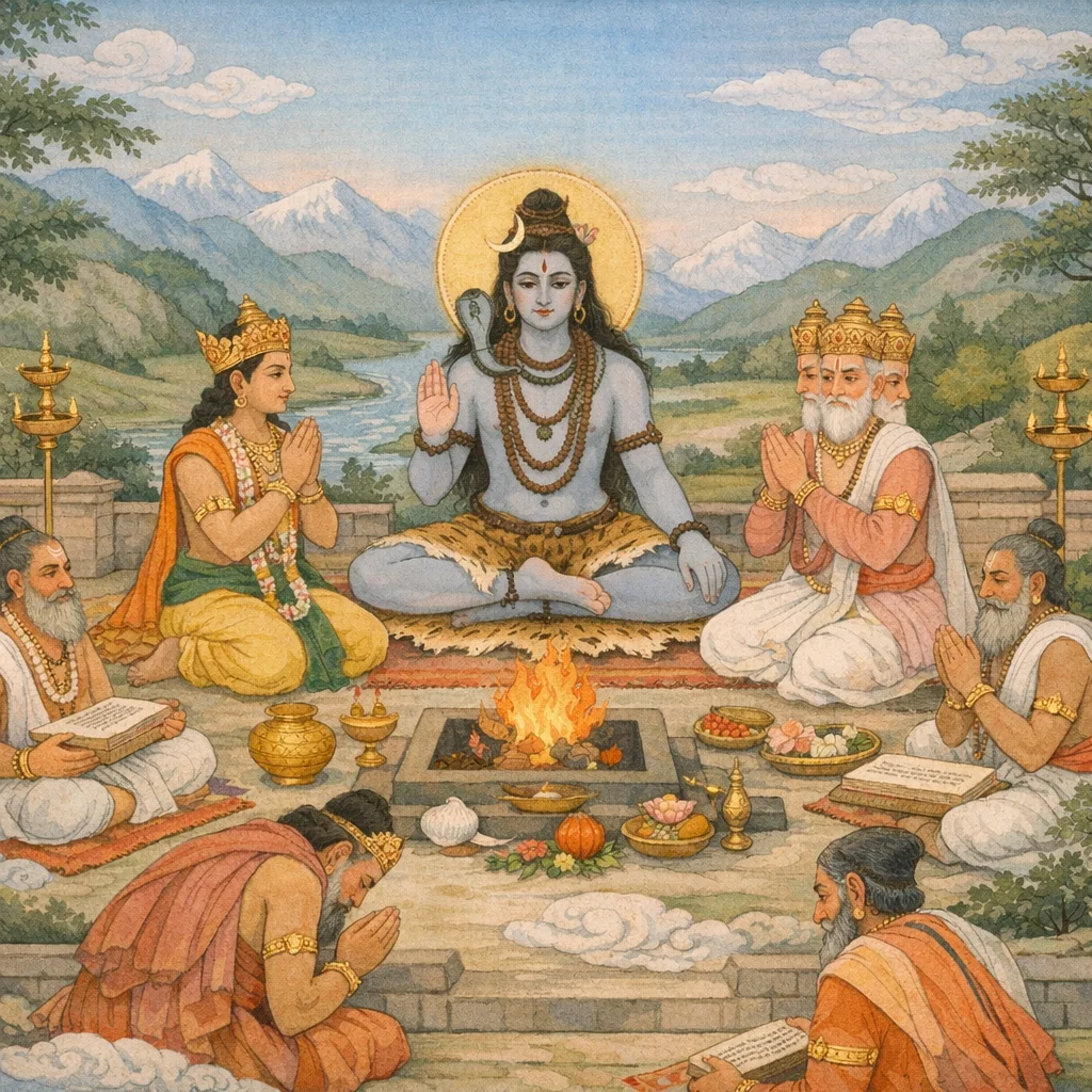 Not a form-list chapter; the emphasis is on Śiva’s functional modes: (1) compassionate teacher (kṛpā-dṛṣṭi, instruction to Dakṣa) and (2) akhileśvara who nonetheless adopts bhaktādhīnatā—revealing transcendence plus immanence in devotional relation.