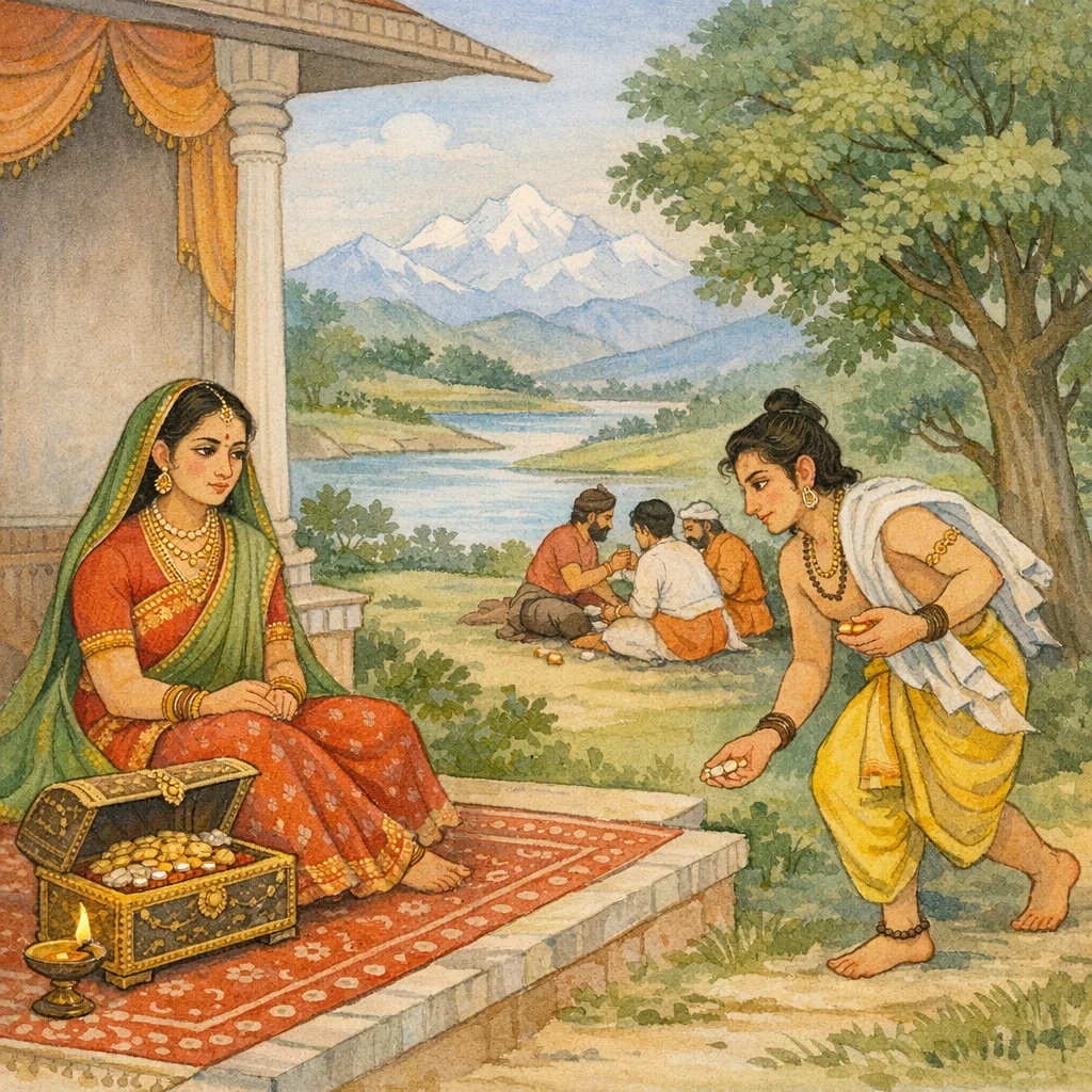 Once, having stolen from the house his father’s jewel-studded finger-ring that had been set aside, he took it and placed it into the hand of a gambler—an act born of a ruinous vice.