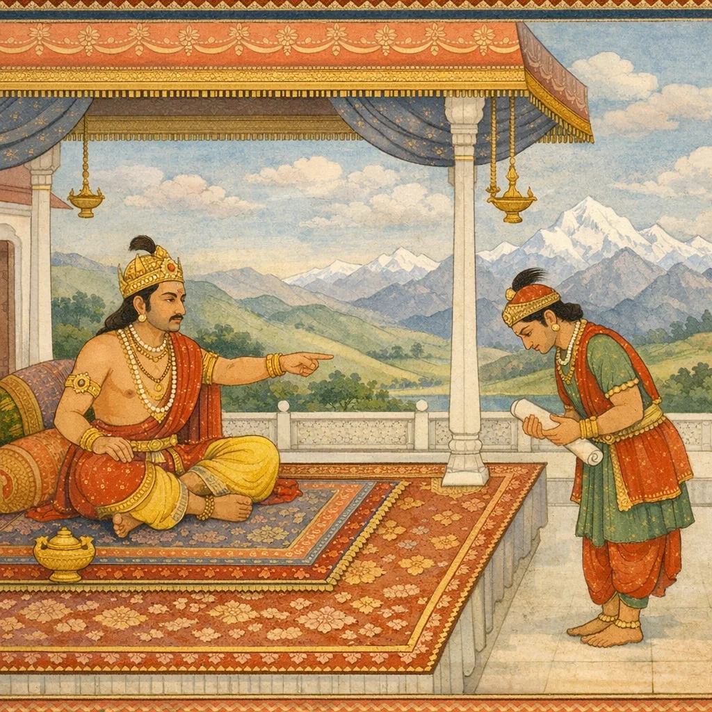 “I am the messenger sent by him—the ever lord of the three worlds, to whom the demons and serpents render service. I have come here into your presence.”