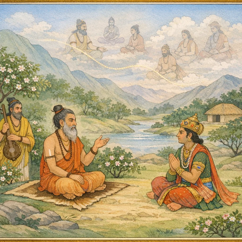 “(He taught) in particular the dharmic duties pertaining to the Devas, and likewise the rites of śrāddha; the rules of sacrifice (makha), and vows (vrata) and related observances—especially the performance of śrāddha at sacred tīrthas.”