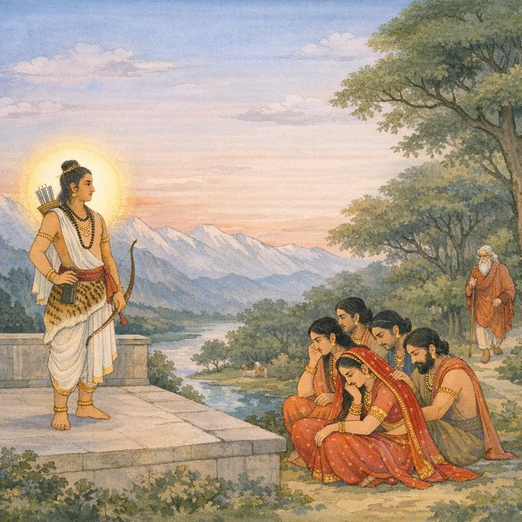 After respectfully sending Arjuna away, all of them remained there. Then the five, gathering together, were overcome by intense sorrow.