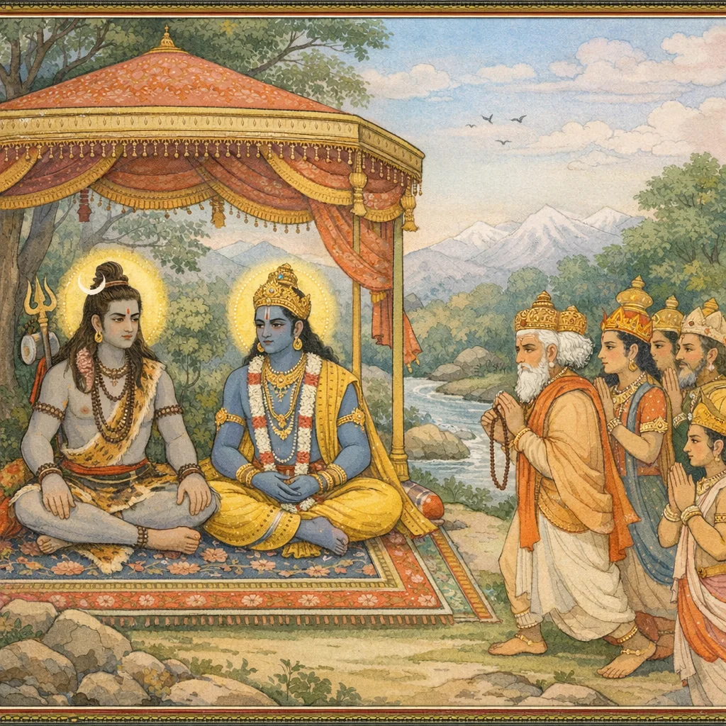 Śaraṇāgati is portrayed as a metaphysical re-alignment: when delegated cosmic powers fail, the devas return to the supreme source. The narrative teaches that order is restored by re-anchoring authority in Śiva (with Viṣṇu as cooperative power), not merely by political or martial force.