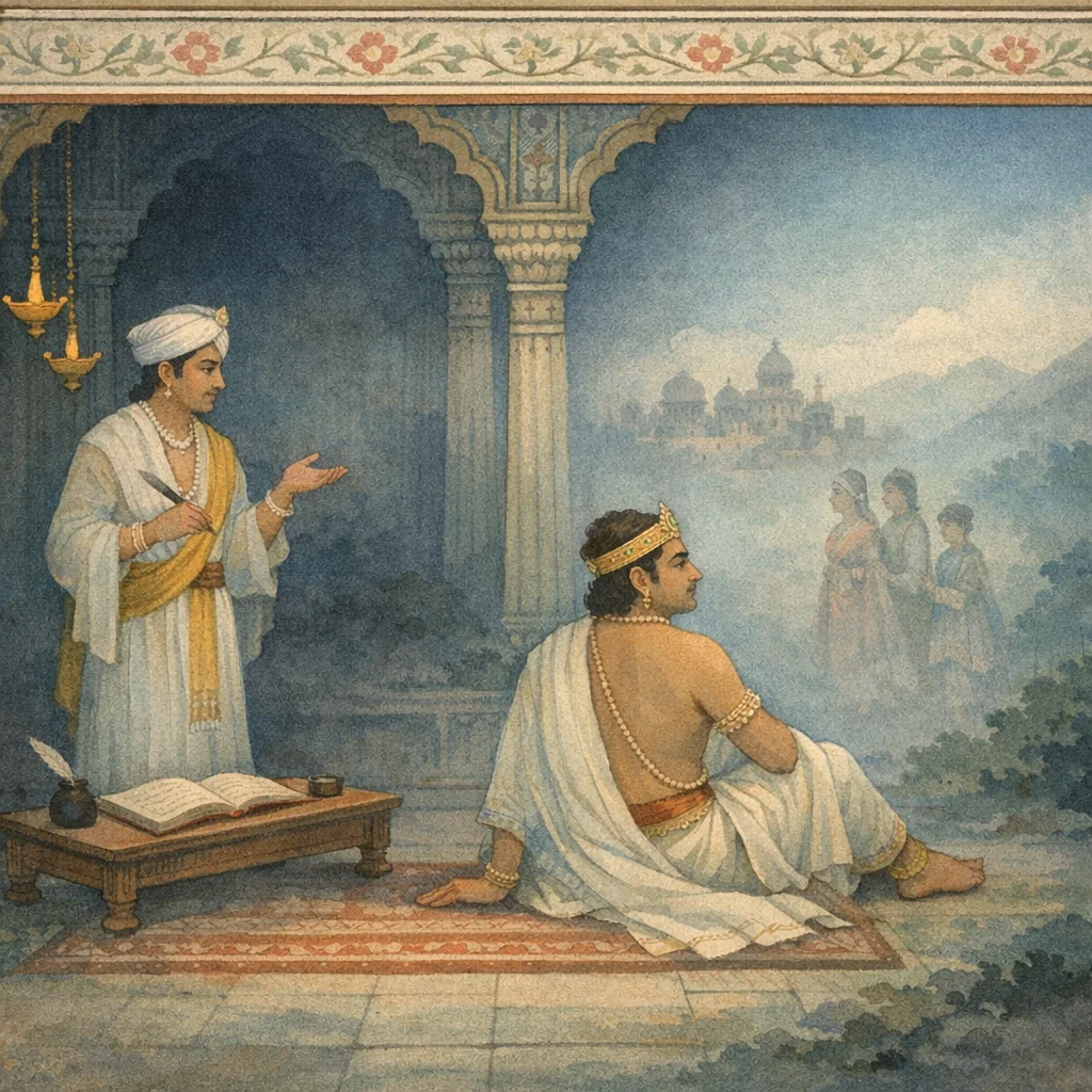 Framed as a didactic report within a sage-to-sage narration (Sanatkumāra speaking), this chapter describes the post-mortem adjudication of immoral beings. Citragupta, Yama’s juridical intelligence and keeper of karmic records, addresses wrongdoers—especially the powerful who fail in dharma: rulers who oppress subjects, thieves of others’ property, and violators of others’ spouses. It establishes the karmic principle that deeds must be re-experienced as their results; suffering is not arbitrary but self-authored through one’s own actions. With a forensic, corrective tone, it rejects external blame, shatters the delusion of temporary sovereignty, and shows how worldly supports (kingdom, family) collapse at death. Naraka is presented not merely as punishment but as a pedagogical extension of ṛta/dharma, making karmic causality immediately legible and compelling recognition, remorse, and the need for restraint and devotion as preventive sādhanā.