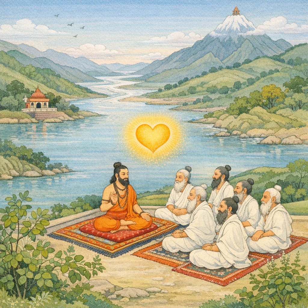 She is indeed called “Gāyatrī,” for she protects the chanter of the mantra from falling into ruin. Just as in this world one who is devoid of meaning cannot convey another’s meaning, so too the sacred utterance must be held with true understanding, that it may bear its liberating fruit in the worship of Śiva.