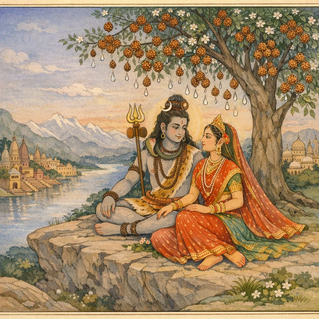 “Brāhmaṇas, Kṣatriyas, Vaiśyas, and Śūdras came into being by My command. Likewise upon the earth, Rudrākṣas also arose—of that very origin—auspicious ‘eyes’, beads born of Rudra.”