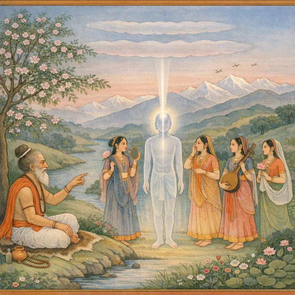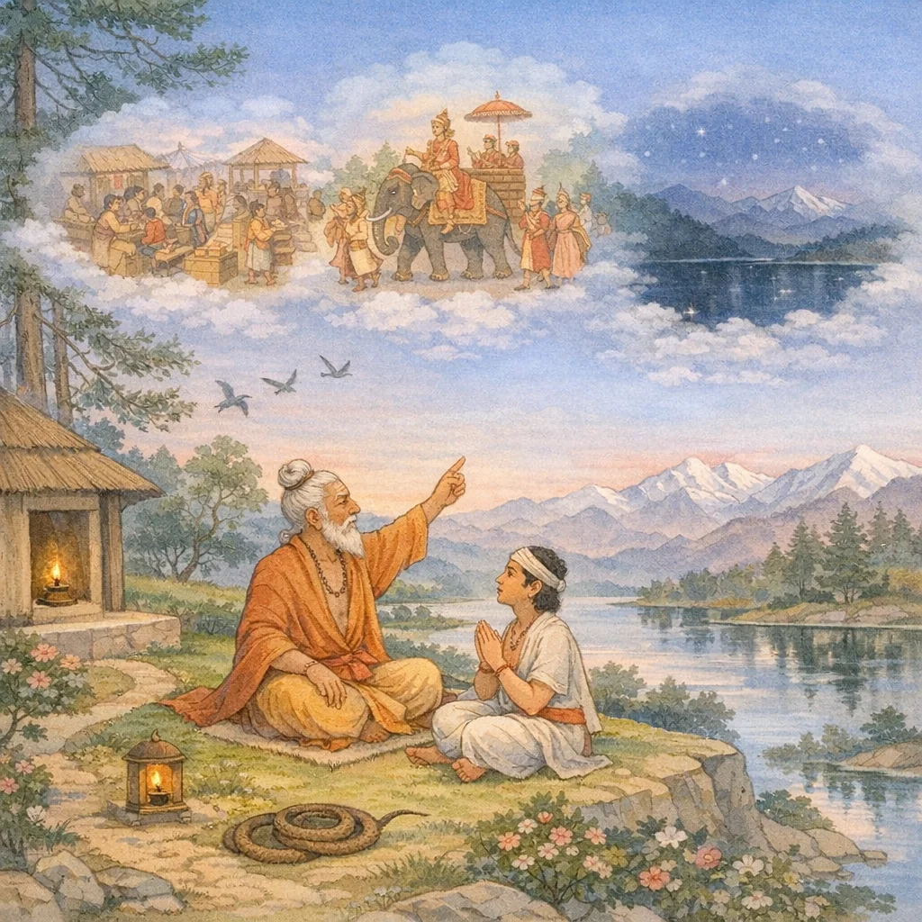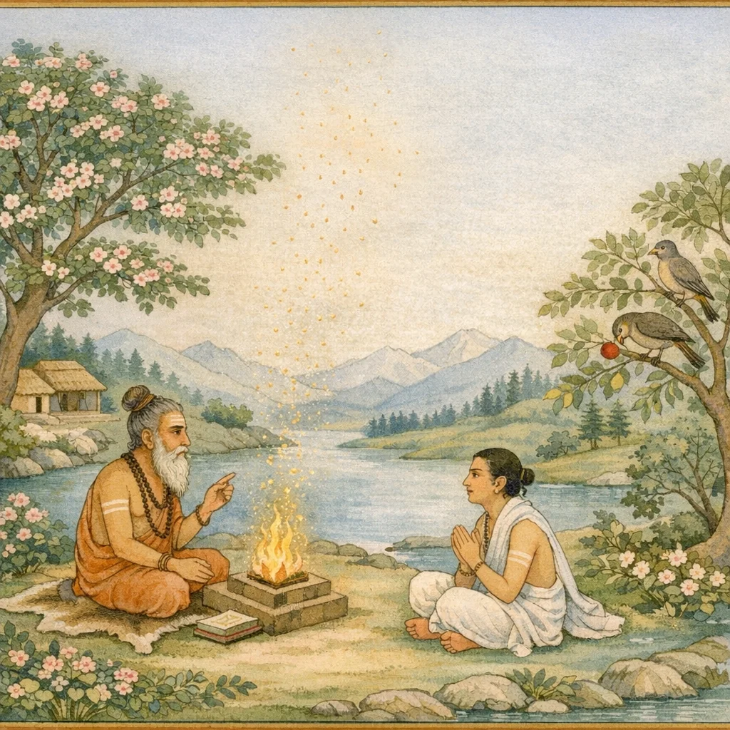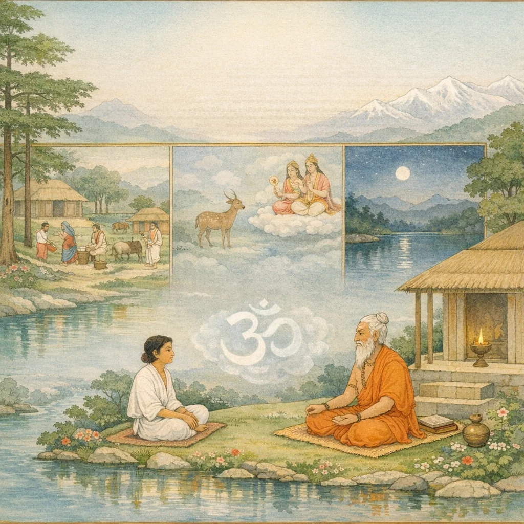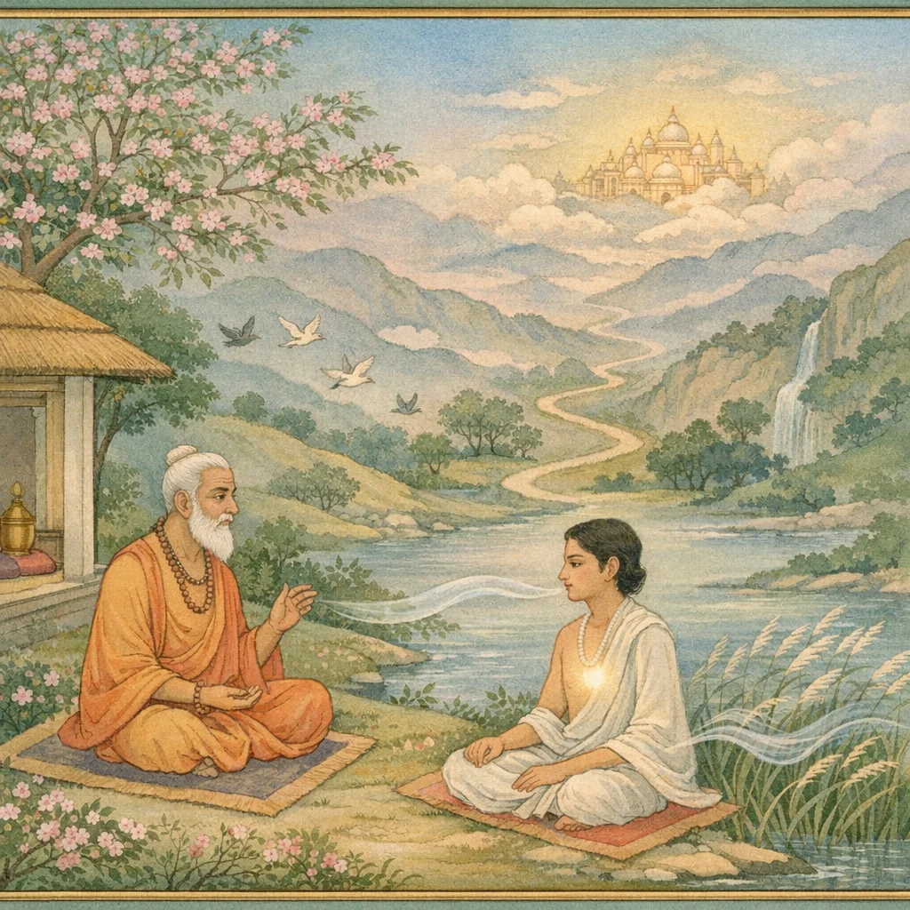The Katha Upanishad, a principal Upanishad of the Krishna Yajurveda, presents a profound dialogue between the young seeker Nachiketa and Yama on death, the Self (Atman), and liberation (moksha). It grounds spiritual life in the ethical discernment between preyas (the merely pleasant) and shreyas (the truly good). Through the famous chariot allegory, it explains inner discipline: senses, mind, and intellect must be governed so that the Self is realized. The text teaches that the Atman is unborn, eternal, and imperishable, and that direct realization of the Self dissolves fear and sorrow and leads to freedom.