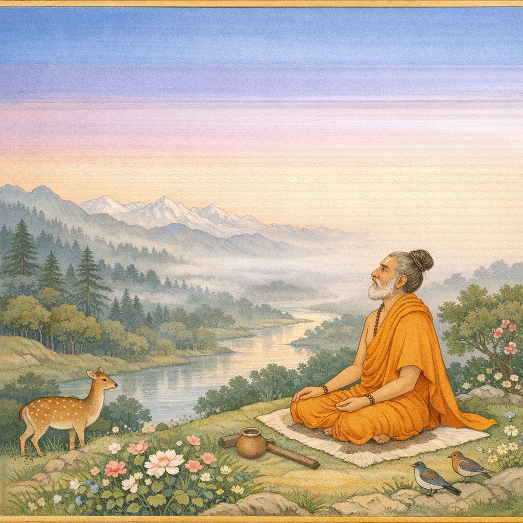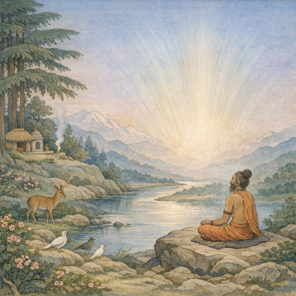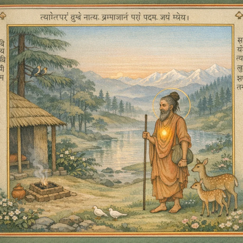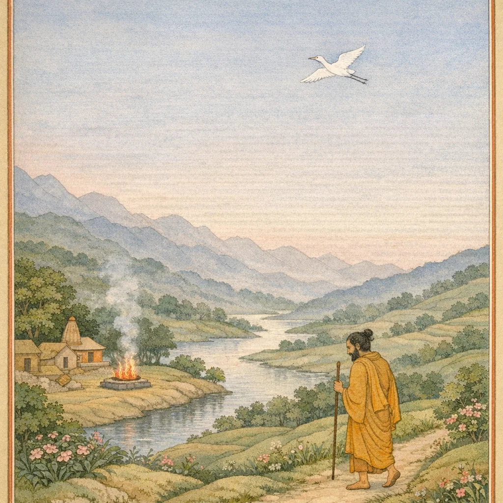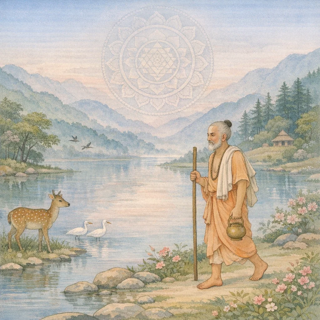 The Paramahansaparivrajaka Upanishad, a brief Sannyasa Upanishad associated with the Atharvaveda, defines the ideal of the paramahaṃsa-parivrājaka—the highest wandering renunciant. In a small compass it shifts Vedic authority from external ritual performance to inner realization, presenting Self-knowledge (ātma-vidyā/jñāna) as the decisive means to liberation. Its central teaching is that true renunciation is not merely the abandonment of possessions but the dissolution of “mine-ness” (mamatā) and ego (ahaṅkāra). The paramahaṃsa remains equanimous amid praise and blame, honor and dishonor, pleasure and pain, heat and cold; he lives with minimal dependence and moves through the world without attachment. In this way the text translates an Advaitic orientation—ātman and brahman as one—into the ethics and lived form of the highest sannyāsa.