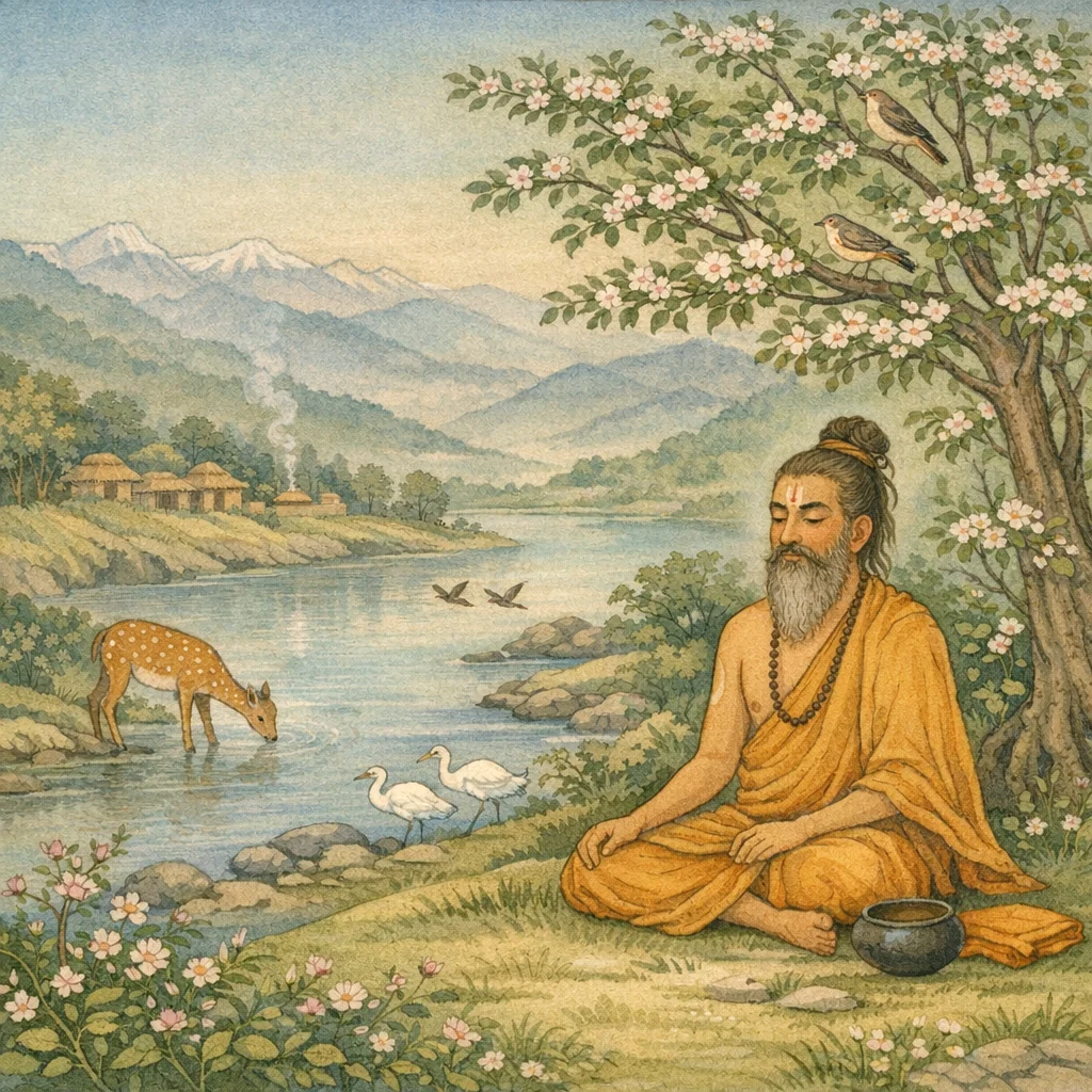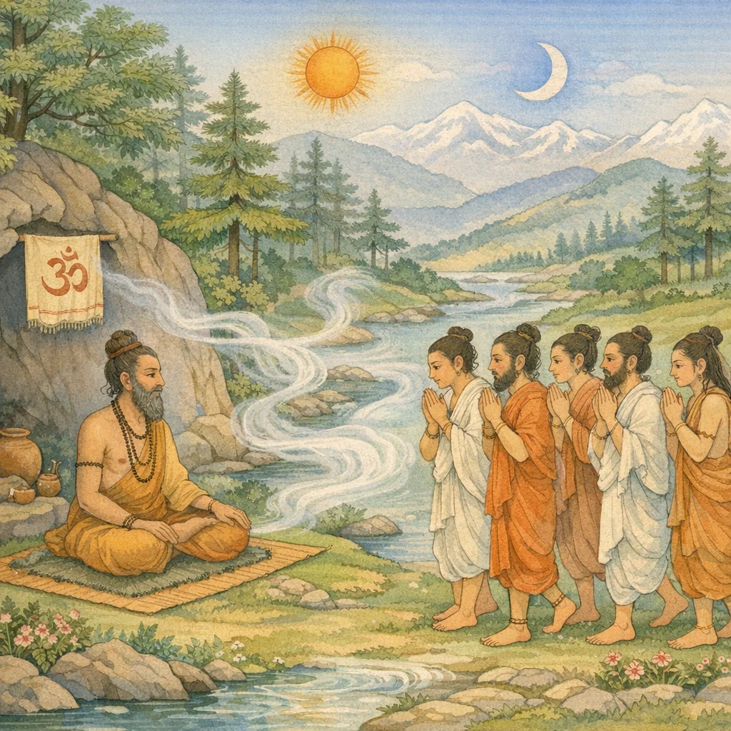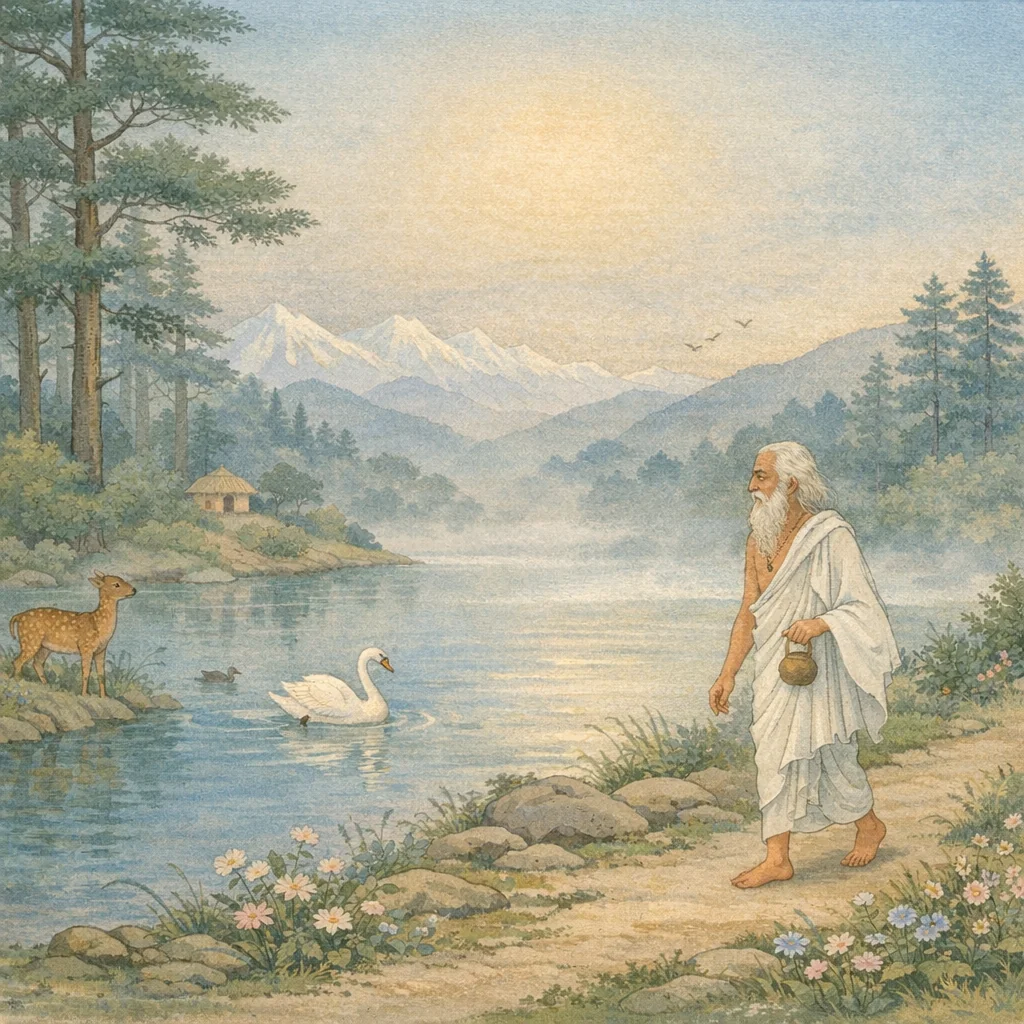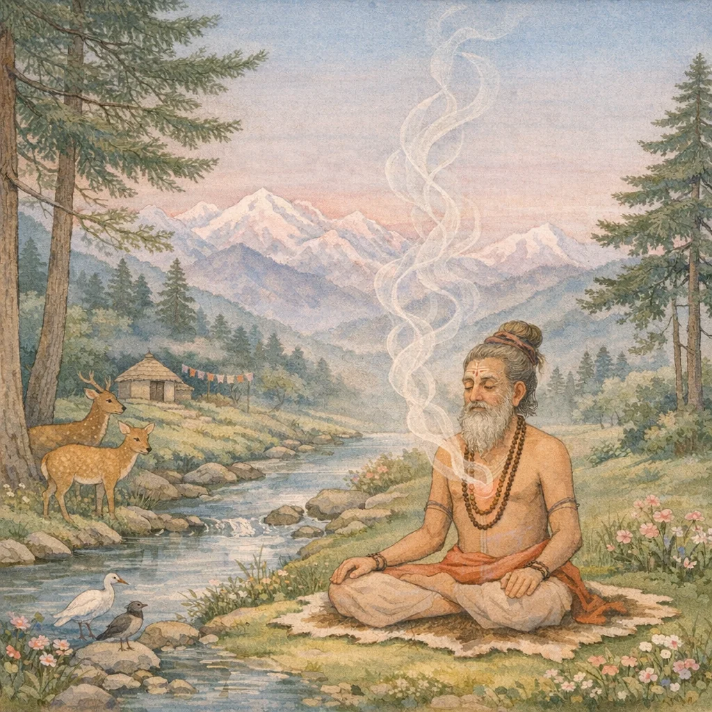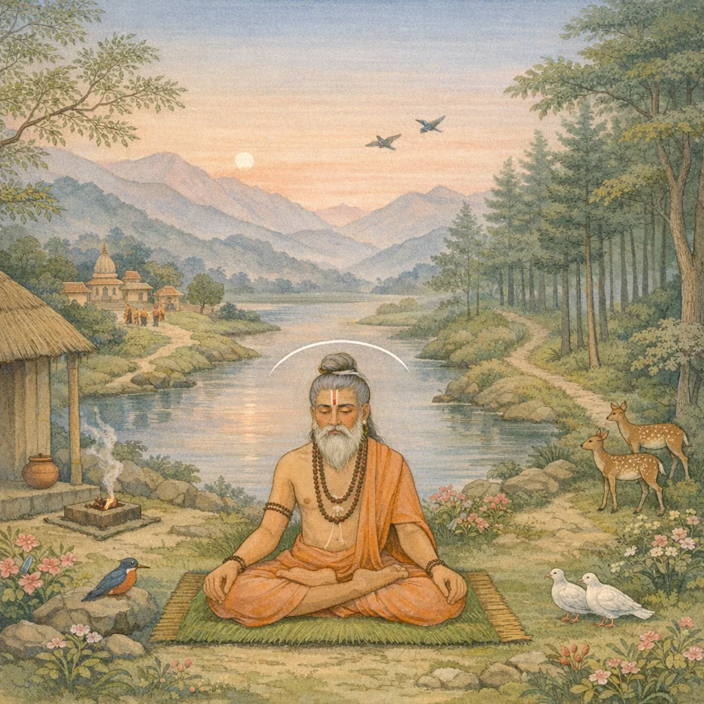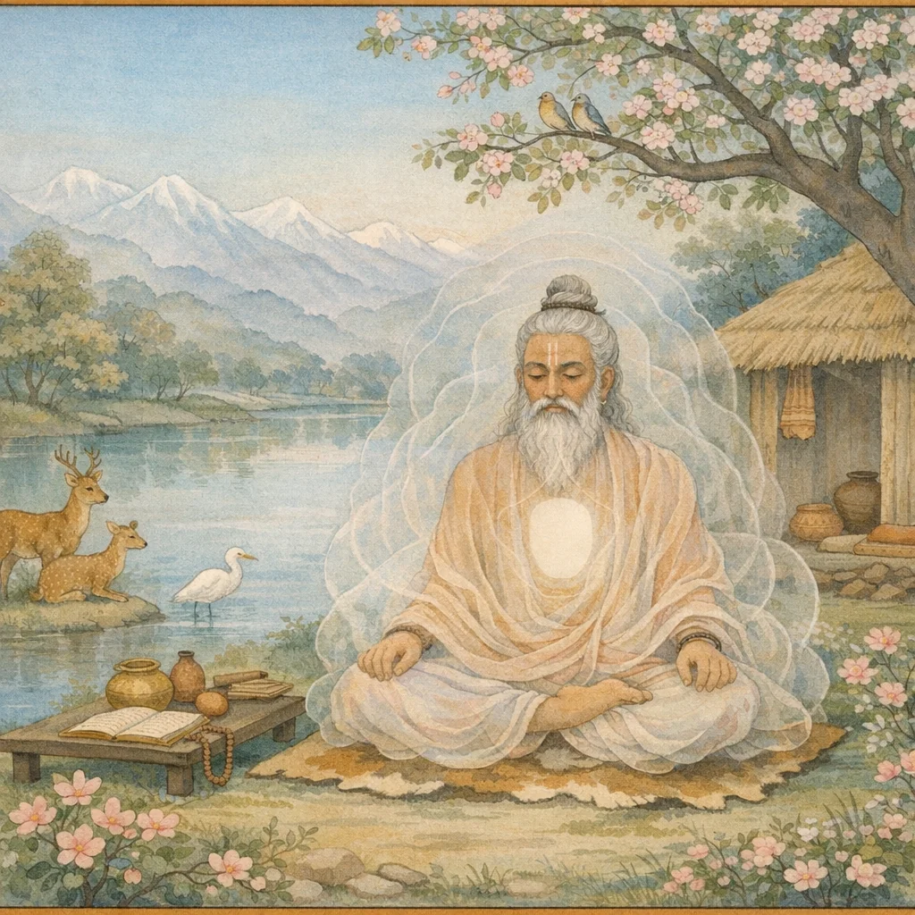 The Paramahansaparivrajaka Upanishad, a brief Sannyasa Upanishad associated with the Atharvaveda, defines the ideal of the paramahaṃsa-parivrājaka—the highest wandering renunciant. In a small compass it shifts Vedic authority from external ritual performance to inner realization, presenting Self-knowledge (ātma-vidyā/jñāna) as the decisive means to liberation. Its central teaching is that true renunciation is not merely the abandonment of possessions but the dissolution of “mine-ness” (mamatā) and ego (ahaṅkāra). The paramahaṃsa remains equanimous amid praise and blame, honor and dishonor, pleasure and pain, heat and cold; he lives with minimal dependence and moves through the world without attachment. In this way the text translates an Advaitic orientation—ātman and brahman as one—into the ethics and lived form of the highest sannyāsa.