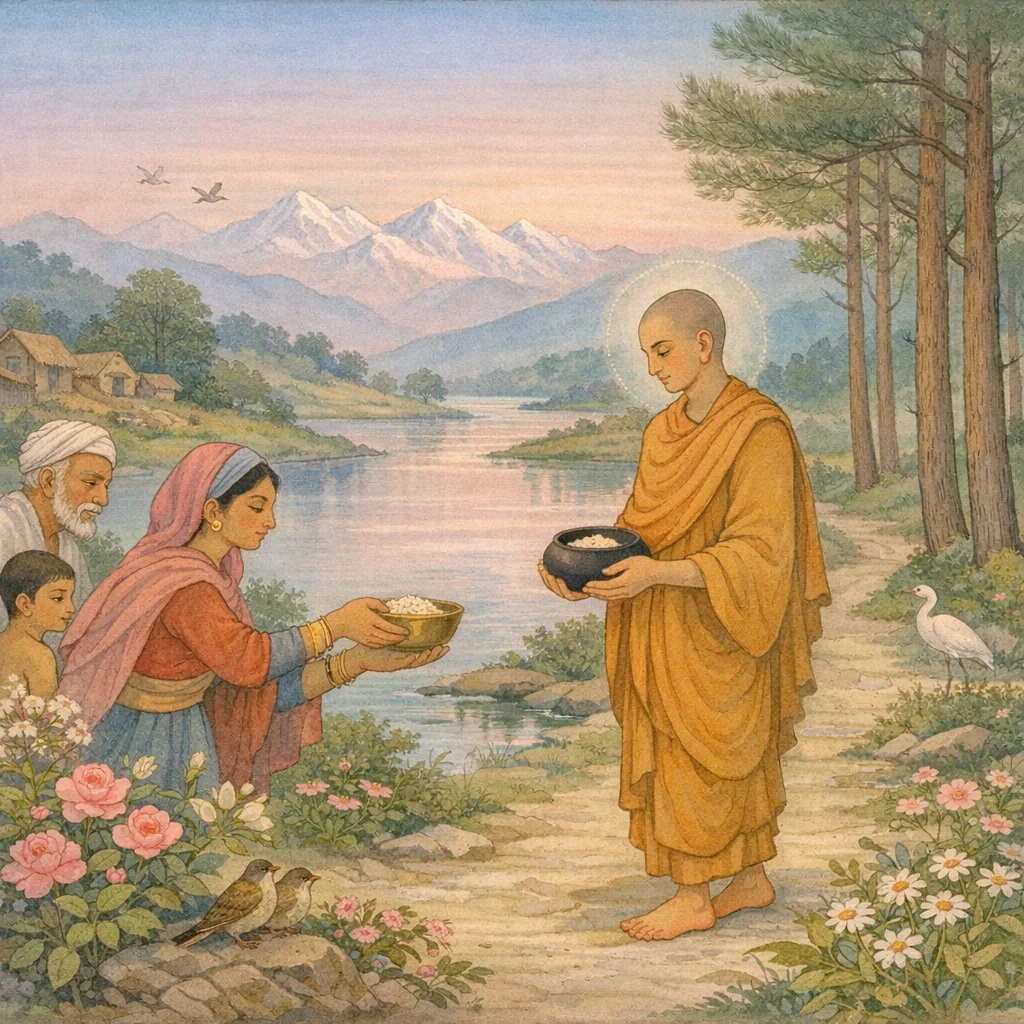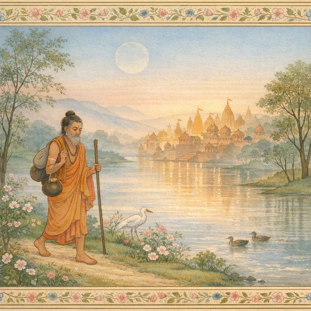 The Bhikshuka Upanishad is a brief Sannyasa Upanishad associated with the Atharvaveda; in only five verses it outlines the ideal of the bhikṣuka, the mendicant renouncer who lives on alms and directs life toward liberation. Rather than offering extended metaphysics, it presupposes the Upanishadic horizon of Self-knowledge and concentrates on the ethical and ascetical conditions that stabilize realization. Its central teaching is that mendicancy is a spiritual discipline, not poverty for its own sake: non-possession (aparigraha), restraint of the senses, inner silence, and equanimity (samatā) toward praise and blame, gain and loss, pleasure and pain. In doing so, it legitimizes sannyāsa as a dharmic vocation aimed at moksha and presents dispassion (vairāgya) and steadiness of mind as the practical ground of liberating knowledge.