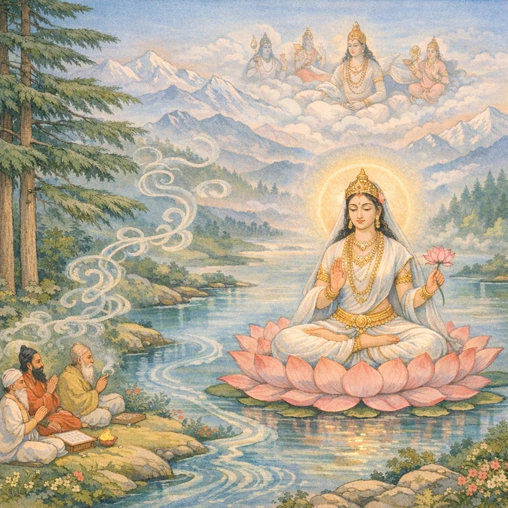 The Devi Upanishad (associated with the Atharvaveda) is a major Śākta Upanishad that identifies the Goddess (Devī) with Parabrahman, the supreme reality. It portrays Devī as both the efficient and material cause of the universe and as the power presiding over creation, preservation, and dissolution. A central philosophical move is its integration of nirguṇa transcendence and saguṇa manifestation: Devī is beyond all attributes yet appears as the cosmos and the gods. Through the framework of māyā/śakti it explains bondage and veiling, while vidyā leads to liberation (mokṣa), all under Devī’s sovereignty. Mantra and vāc (sacred speech) are treated as Devī’s expressive body, bringing devotion (bhakti) and knowledge (jñāna) together in non-dual realization.