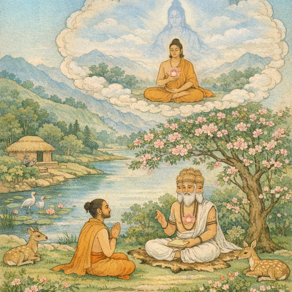 The Kaivalya Upanishad (associated with the Atharvaveda, 26 verses) is a concise yet influential Vedāntic text that presents liberation (kaivalya) as the direct realization of the non-difference of Ātman and Brahman. Framed as Aśvalāyana’s request to Brahmā for the highest knowledge, it foregrounds renunciation, austerity, faith, and inner purity as the prerequisites for Brahma-jñāna. It characterizes the Self as the self-luminous witness of waking, dream, and deep sleep—unattached to action and untouched by karma. External ritual is subordinated to inward contemplation: meditation on Brahman in the “heart-lotus,” relinquishing body–mind identification, and cultivating discernment and dispassion. Although it features prominent praise of Rudra/Śiva, its culmination is non-sectarian and non-dual: Brahmā, Viṣṇu, Rudra, Indra, and all cosmic functions are gathered into the one supreme reality. Devotion and meditation thus mature into Advaita knowledge, affirming jīvanmukti (liberation in this life) and the cessation of grief, fear, and rebirth.