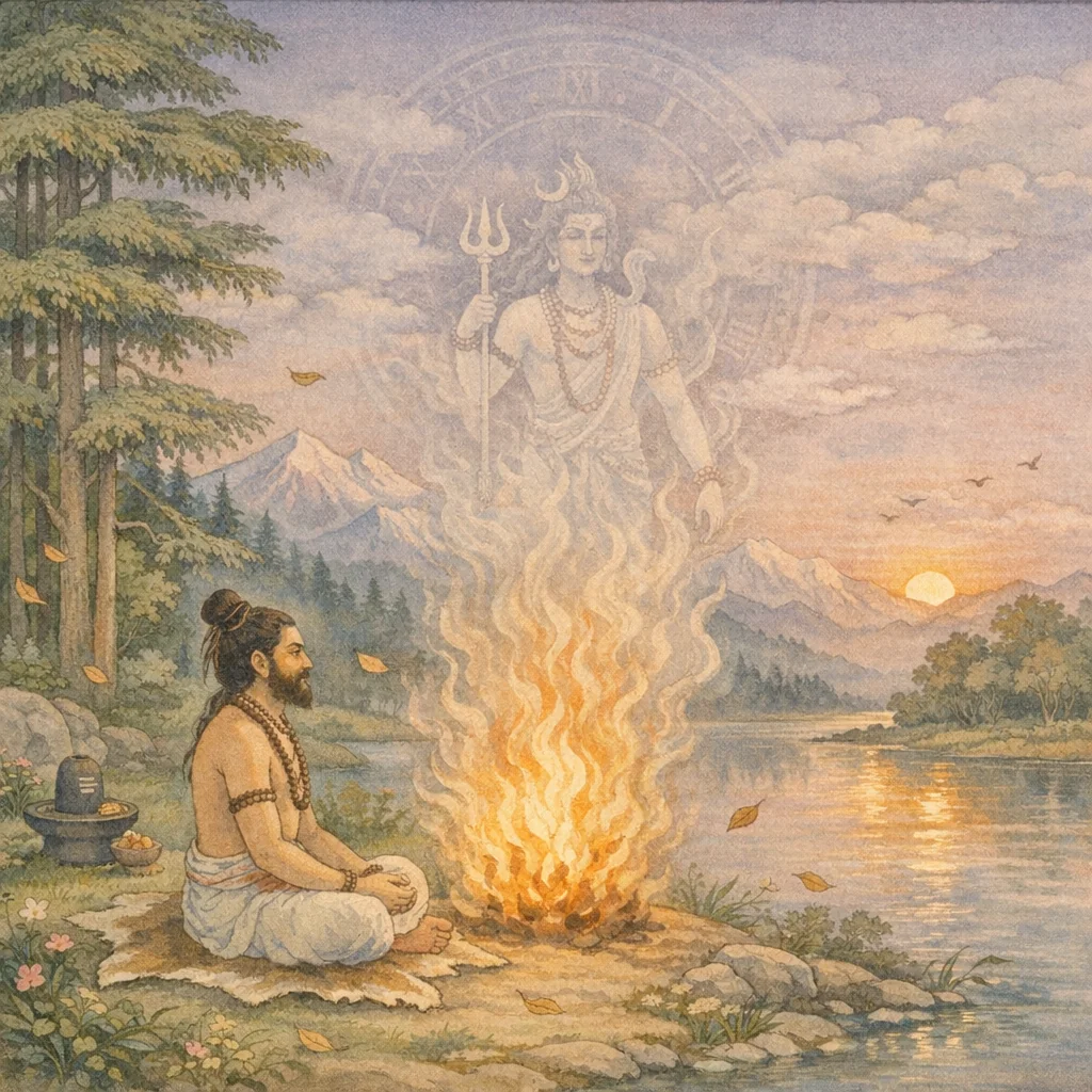 The Kalagnirudra Upanishad, an Atharvavedic Śaiva Upaniṣad, presents “Kalāgni-Rudra” (Rudra as the fire that consumes time) as a metaphysical symbol for the Absolute. In Upaniṣadic terms, Rudra is identified with Brahman/Ātman: the witness-consciousness beyond temporality, change, and death. The “fire” motif functions soteriologically—knowledge burns ignorance and dissolves the time-bound ego that sustains saṃsāra. The text also exemplifies the Śaiva Upaniṣadic integration of emblem and insight. Sacred ash (bhasma) and the tripuṇḍra are interpreted as contemplative aids rather than mere external marks: they inculcate impermanence, renunciation, and the transcendence of triads (the three guṇas or the three states of waking, dream, and deep sleep), with the bindu pointing to turīya, pure awareness. Liberation is grounded in jñāna (direct realization), while devotion and mantra serve as supportive disciplines that culminate in inward abidance as the Self.