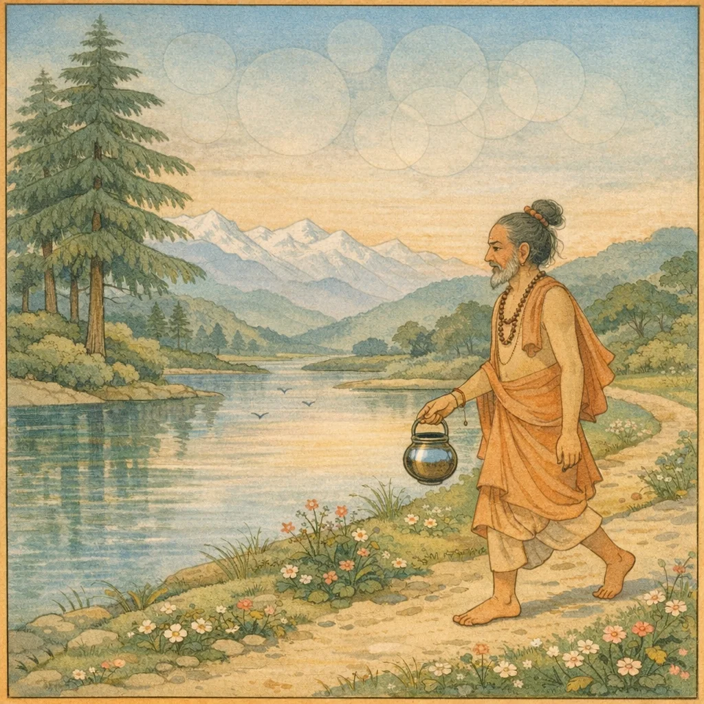 The Kuṇḍikā Upaniṣad is a late Saṃnyāsa Upaniṣad associated with the Atharvaveda, notable for presenting renunciation as a disciplined, knowledge-oriented way of life. In a compact set of verses, it outlines the ethos of the wandering ascetic and repeatedly subordinates external marks to inner transformation. Its central emblem is the kuṇḍikā, the ascetic’s water-pot, treated not merely as an object but as a symbol of inner purification, restraint, and non-possessiveness. The text thus reinterprets ascetic implements as contemplative supports that point beyond themselves. Doctrinally, it stresses vairāgya, śama-dama, equanimity, and non-injury, culminating in the Vedāntic aim of realizing the ever-free Self. Liberation is framed as direct knowledge of Ātman as Brahman, while bondage is sustained by ignorance and identification with roles and possessions.