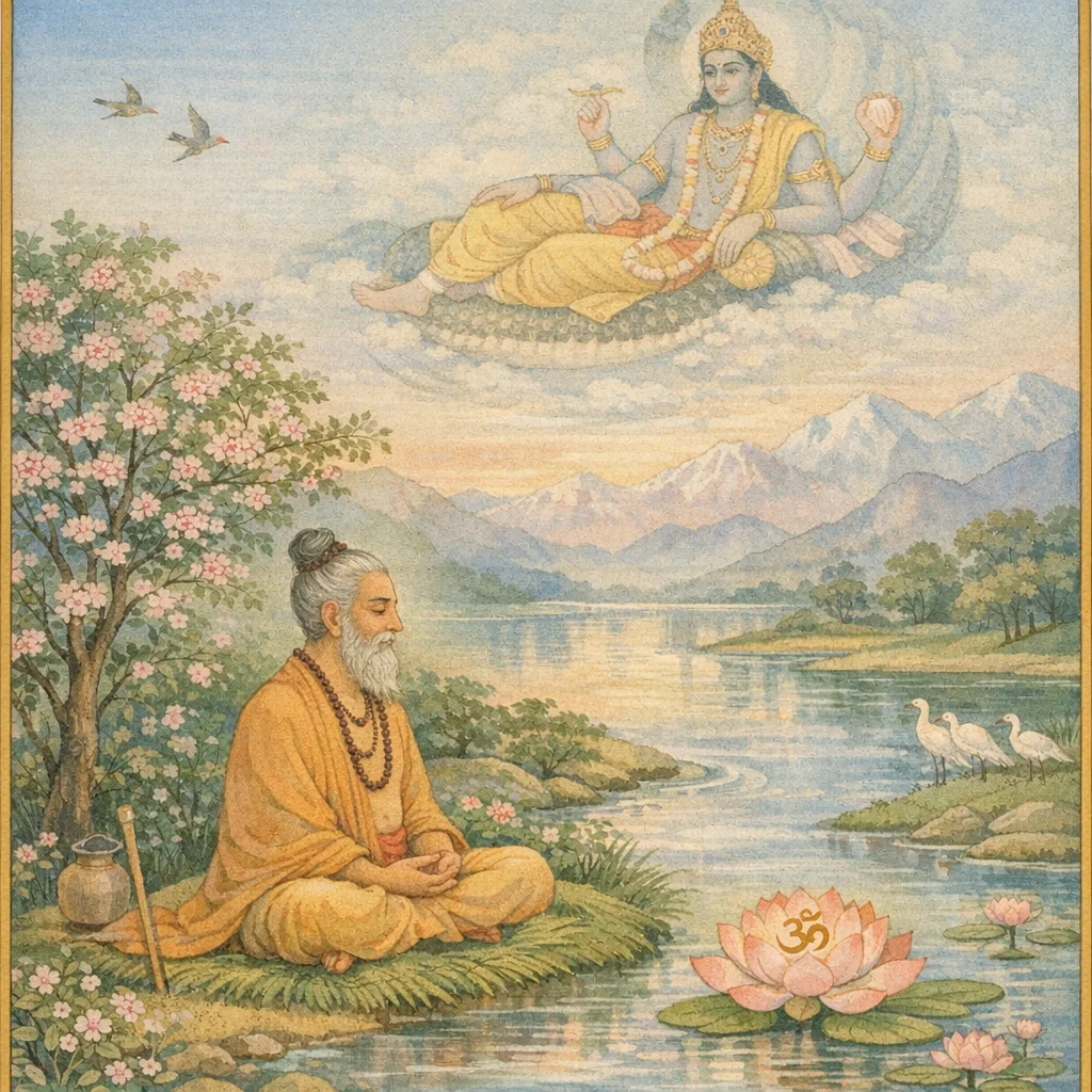 The Nārāyaṇa Upaniṣad, associated with the Yajurveda, is a very brief yet doctrinally concentrated Upaniṣad that proclaims Nārāyaṇa (Viṣṇu) as the supreme Brahman, the all-pervading ground of the cosmos, and the inner ruler (antaryāmin) within all beings. It is representative of later Upaniṣadic literature that anchors sectarian devotion in Upaniṣadic authority while preserving the Vedāntic aim of liberation. Its philosophical hallmark is the synthesis of saguṇa and nirguṇa registers: Nārāyaṇa is praised as a personal Lord with cosmic functions, yet also indicated as the transcendent reality beyond limiting attributes. Creation, preservation, and dissolution are interpreted as expressions of the one principle, and contemplative practices—remembrance of the divine name, recitation, and meditation—are presented as efficacious means oriented toward mokṣa.