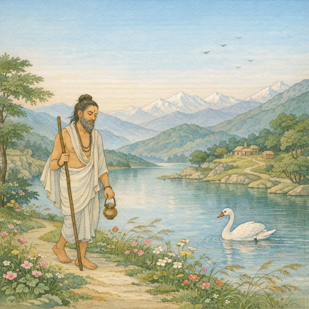 The Paramahaṃsa Upaniṣad, traditionally linked with the Atharvaveda and grouped among the Saṃnyāsa Upaniṣads, presents the highest ideal of renunciation: the paramahaṃsa, the ascetic who discerns the Real from the unreal. Its central claim is that liberation arises from direct knowledge of the Self’s non-difference from brahman; once such knowledge dawns, external marks, ritual supports, and social identities can become props for ego and are therefore relinquished. The paramahaṃsa lives simply on alms, remains equanimous amid praise and blame and other opposites, and abides in the vision of the one ātman in all beings.