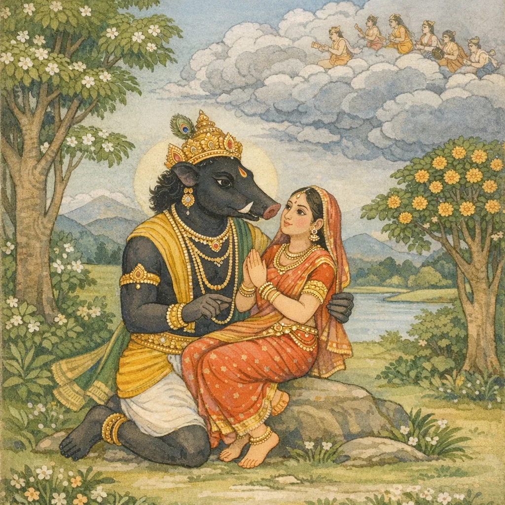 “For a divine thousand years indeed, O Vasundharā, I have held you up—sportively—upon the tip of a single tusk.”