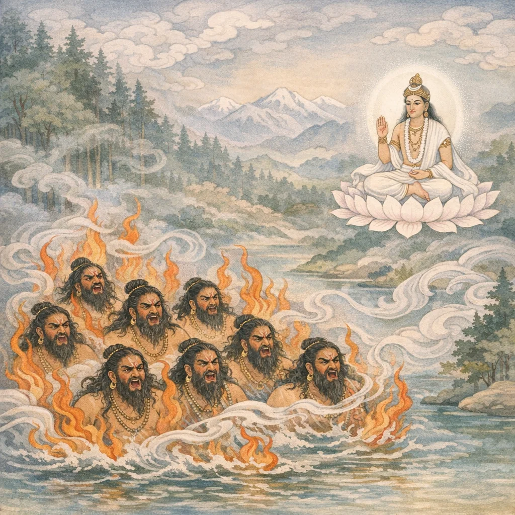 From the divine seer Kṛśāśva were born sons who became the very “divine weapons”—celestial instruments of the gods’ sovereignty and protection.