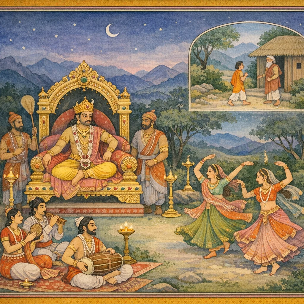 When a very long time had passed, the lord of the Asuras summoned Prahlāda and said, “My child, let some song—some ancient verse—be sung.”