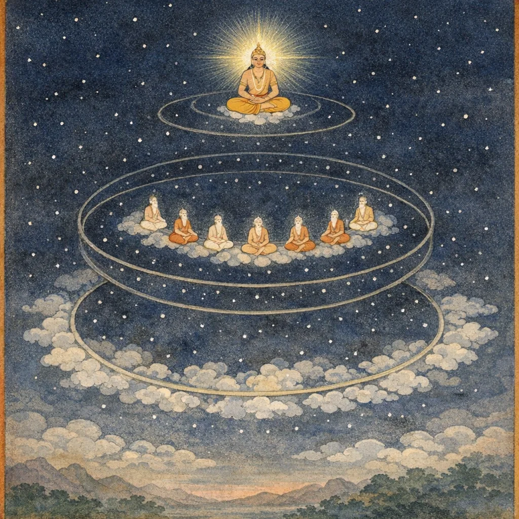 Above Dhruva lies Maharloka—where dwell the kalpa-abiding sages. Maharloka is said to extend for a span of one crore (one koṭi) yojanas.