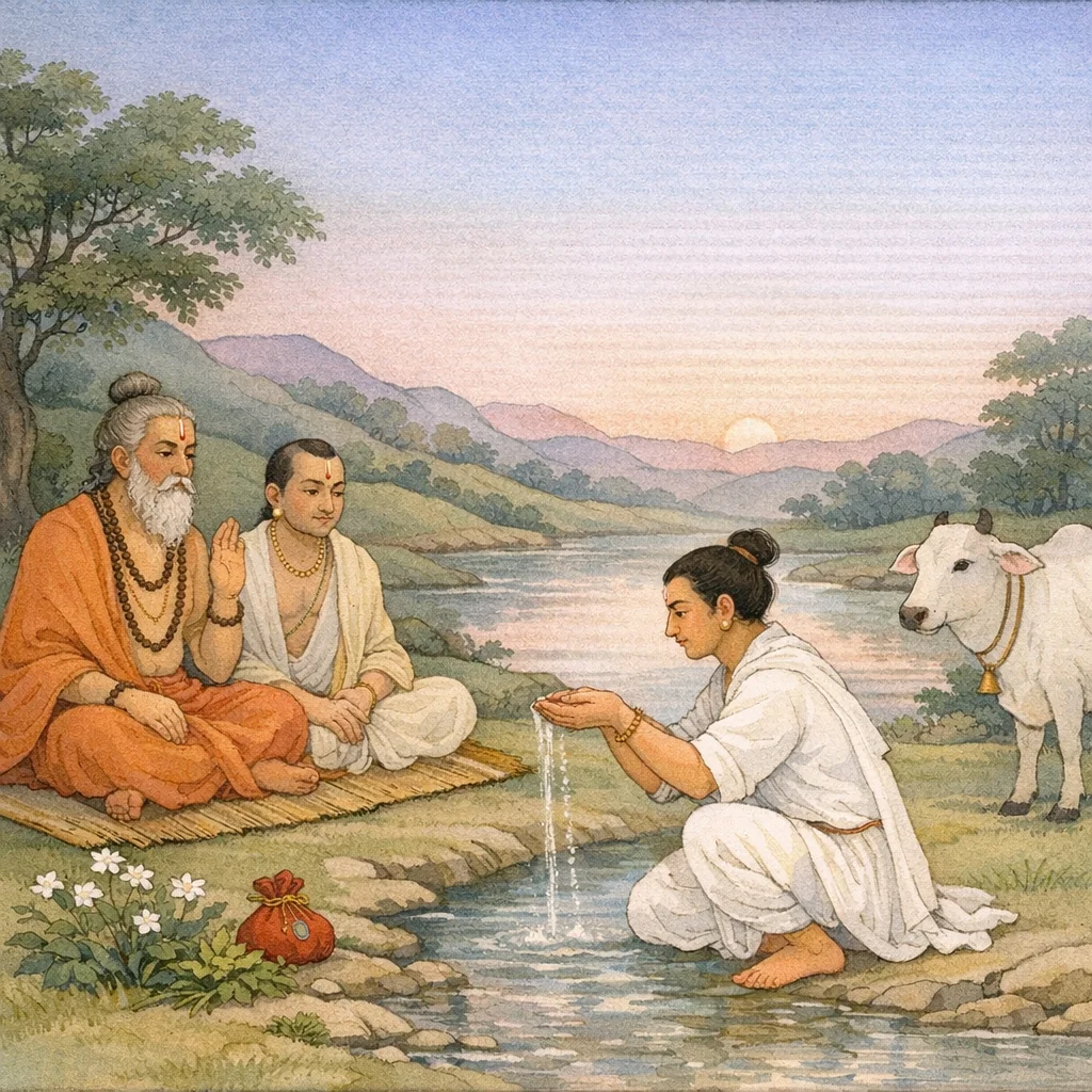 Let a person duly honor the gods, the cows, and the brāhmaṇas, and likewise the accomplished, the elders, and one’s teachers. At both twilights, let him bow in reverence in the Sandhyā rites, and properly attend the sacred fires as well.
