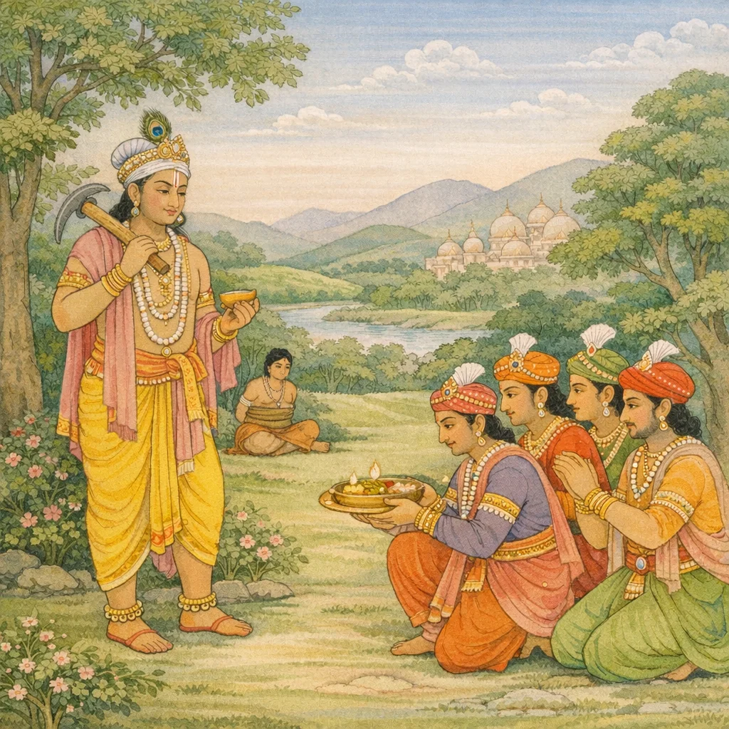 He restrains the Yādavas to prevent a total war and asserts dharma through measured royal demand (Ugrasena’s order). The episode highlights controlled power (bala under maryādā) before it escalates into cosmic threat when insult persists.
