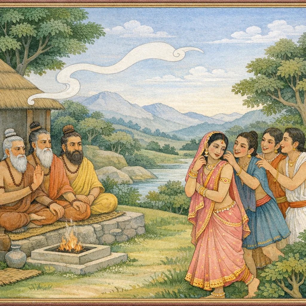 Then those youths—intoxicated with the pride of youth and driven by the unseen impulse of what was to come—adorned Sāmba, the son of Jāmbavatī, as one might dress a woman.