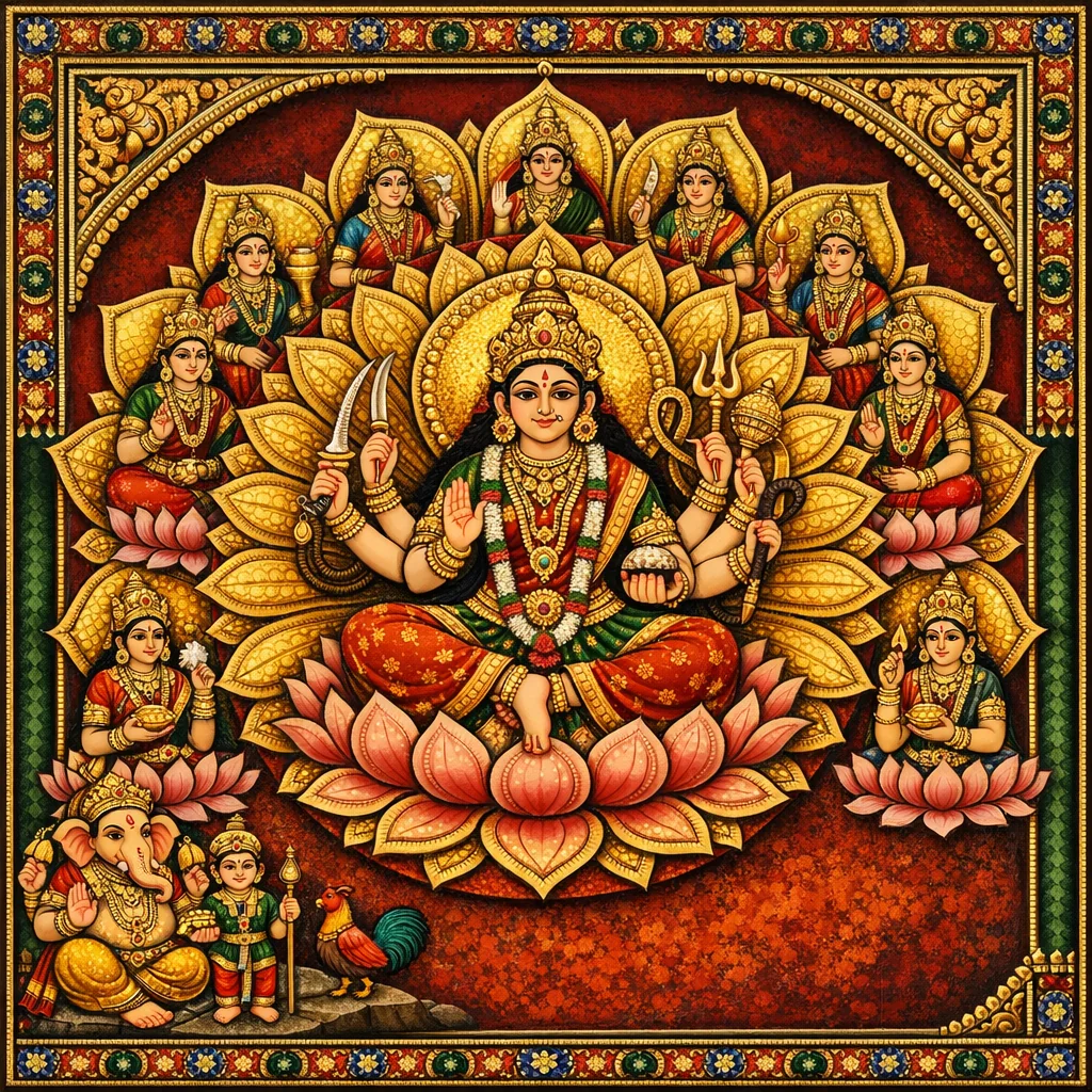 Ce chapitre passe du sujet des mantras et des remèdes médicinaux à un rite de victoire śākta-tantrique dans le cadre du Yuddhajayārṇava. Le Seigneur enseigne l’adoration graduelle (krama) de Kubjikā, décrite comme « sarvārtha-sādhanī », capable d’accomplir tous les buts, y compris la conquête au combat lorsqu’elle est associée à des substances consacrées — notamment l’ājya/le ghee — et à l’activation rituelle des armes. L’architecture du rite est technique : elle prescrit des marqueurs de chakra-pūjā, des syllabes bīja et un système de nyāsa plaçant les mantras sur des points du corps (organe secret, main, cœur, tête), transformant l’officiant en champ de puissance consacré. Cette puissance est ensuite extériorisée dans un maṇḍala : des mantras tels que astra, kavaca, netra, śikhā, etc., sont postés dans les quartiers directionnels, tandis qu’un bīja essentiel polysyllabique est installé au centre à 32 pétales. Le rite s’élargit selon une logique panthéonique : les Mātṛkās émanent de la suprématie de Caṇḍikā ; des pīṭhas sacrés et des placements selon les directions sont invoqués ; et le Vimalapañcaka est réparti entre les directions et les sommets. Le chapitre s’achève par un peuplement structuré du maṇḍala—Gaṇapati/Vaṭuka, gurus, nāthas et divinités environnantes—plaçant Kubjikā (et Kulaṭā) au centre d’une adoration séquentielle pour la protection, la maîtrise et une victoire encadrée par le dharma.