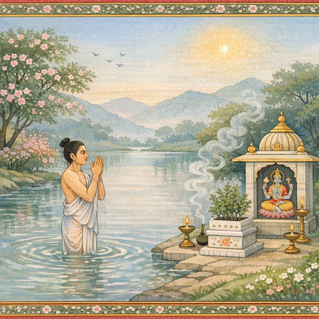 Le chapitre 87 (PP.6.87), intitulé Māsika-puṣpa, présente un calendrier liturgique d’offrandes mensuelles—surtout de fleurs et de feuilles sacrées—pour le culte de Viṣṇu (Keśava/Mādhava/Janārdana/Govinda/Jagannātha). Dans l’atmosphère d’un dialogue entre Umā et Maheśvara, Śiva indique quelles floraisons et quels feuillages conviennent de Caitra à Phālguna. Sont mentionnés, selon les mois et les saisons, campaka, jasmin/yūthikā, bilva, lotus, fleurs rouges, feuilles de ketakī, kadamba, tulasī, atasī, dūrvā, bakula, punnāga, etc., avec des repères comme la saison des pluies ou le Soleil en Taureau. Le chapitre affirme à plusieurs reprises que vénérer le Seigneur des seigneurs revient à honorer toutes les divinités, efface les fautes, accorde les bienfaits désirés et mène finalement à Vaikuṇṭha, faisant de l’offrande florale une pratique simple et une voie de salut.