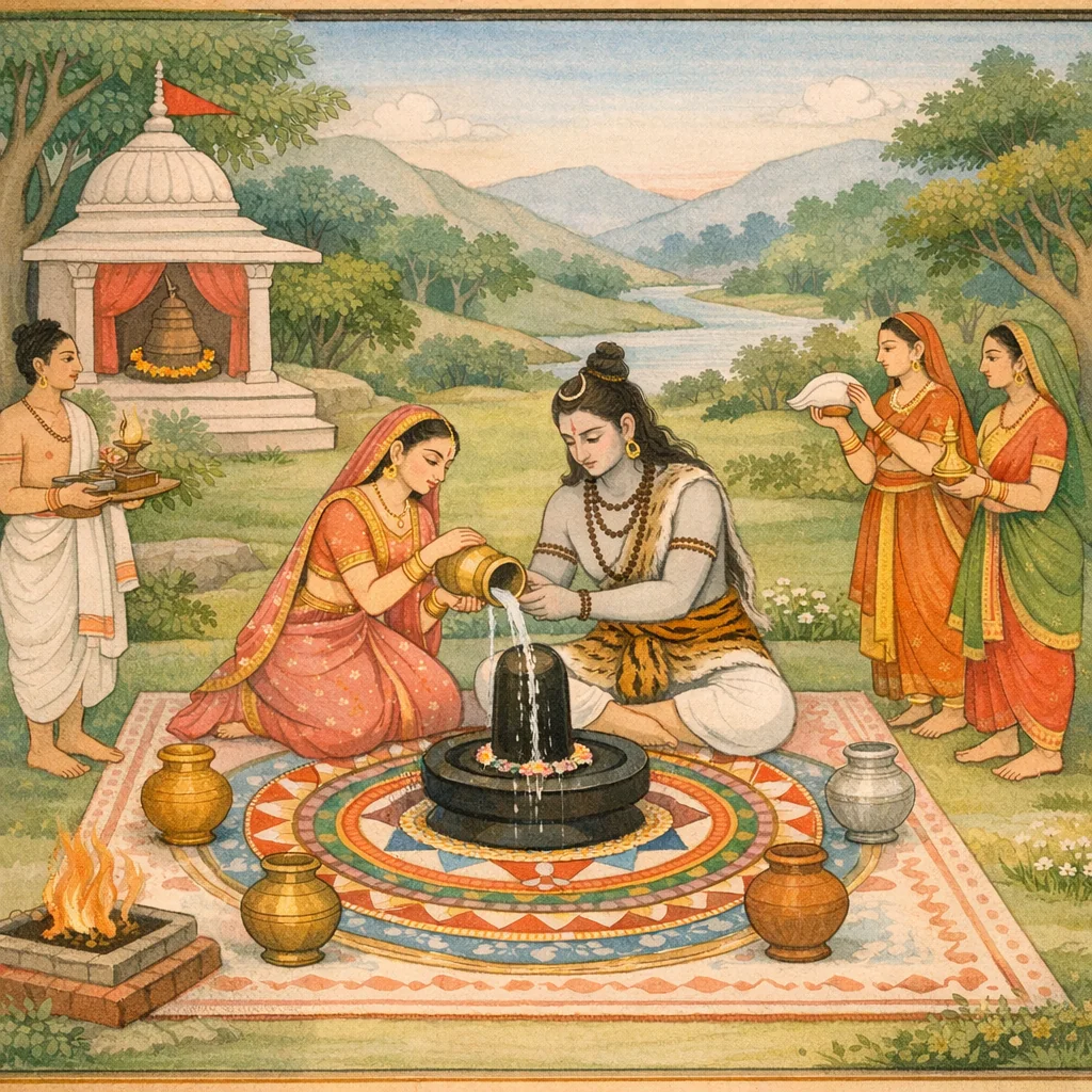 Upamanyu dit : « Ensuite, après avoir ainsi purifié et préparé comme il convient le disciple—celui qui a observé le vœu pāśupata—le maître doit l’oindre par l’abhiṣeka et l’établir dans la fonction d’ācārya ; sinon, qu’on n’agisse qu’en accord avec l’aptitude de ce disciple à la discipline du yoga. »